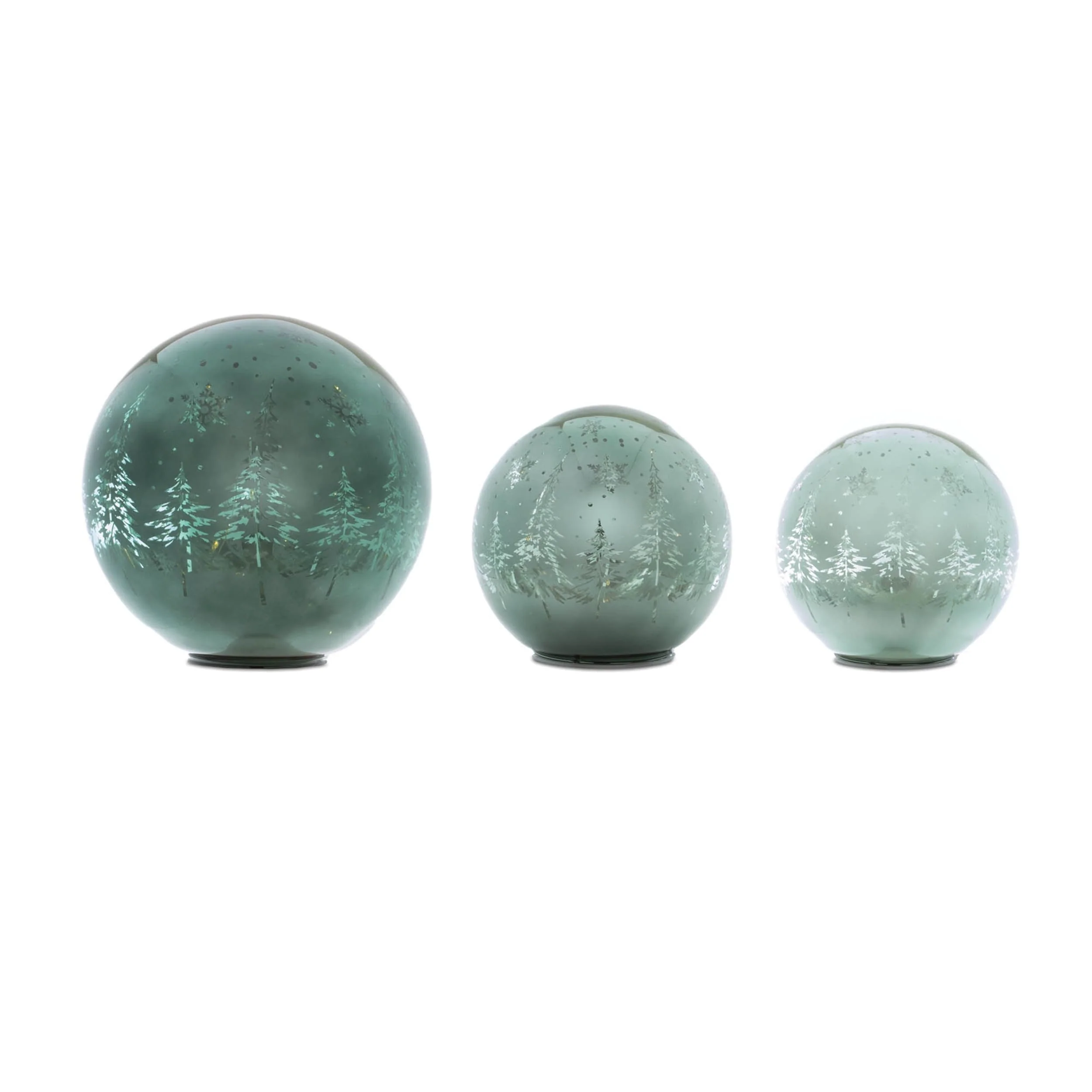 LED Pine Tree Globe Set of 3 Glass Winter Decor with Warm Lights - 7.75” x 7.75” x 7.25”