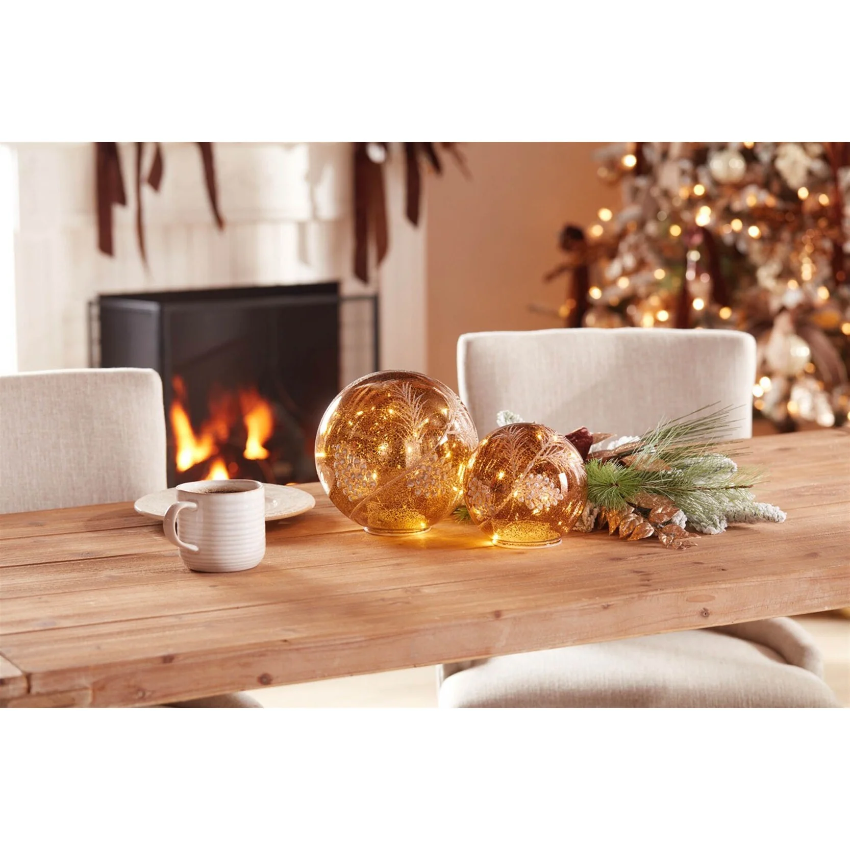 Glass LED Pinecone Globe Set of 2 with Warm Light and Glitter Accents - 7.5” x 7.5” x 7.25” (L x W x H)