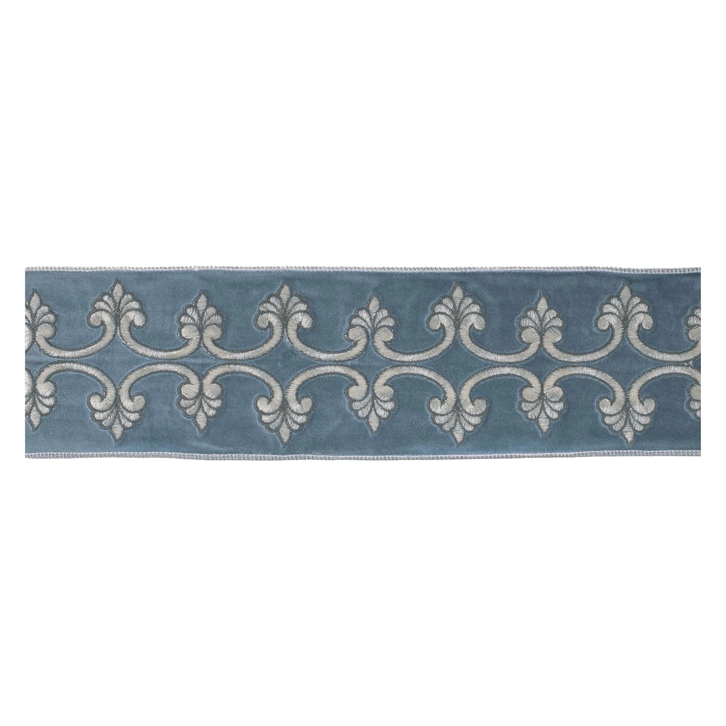 Blue Embroidered Wired Ribbon 4 Inch x 5 Yards for Holiday Crafts