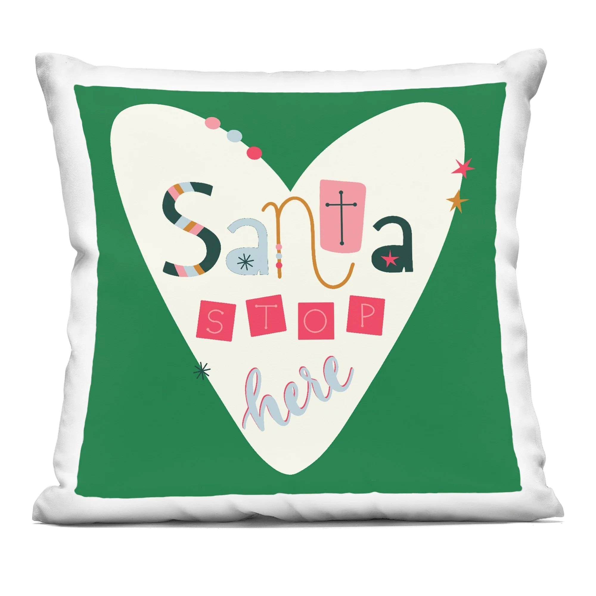 Stupell Santa Stop Here Heart Decorative Printed Throw Pillow Design by Sazerelli Designs