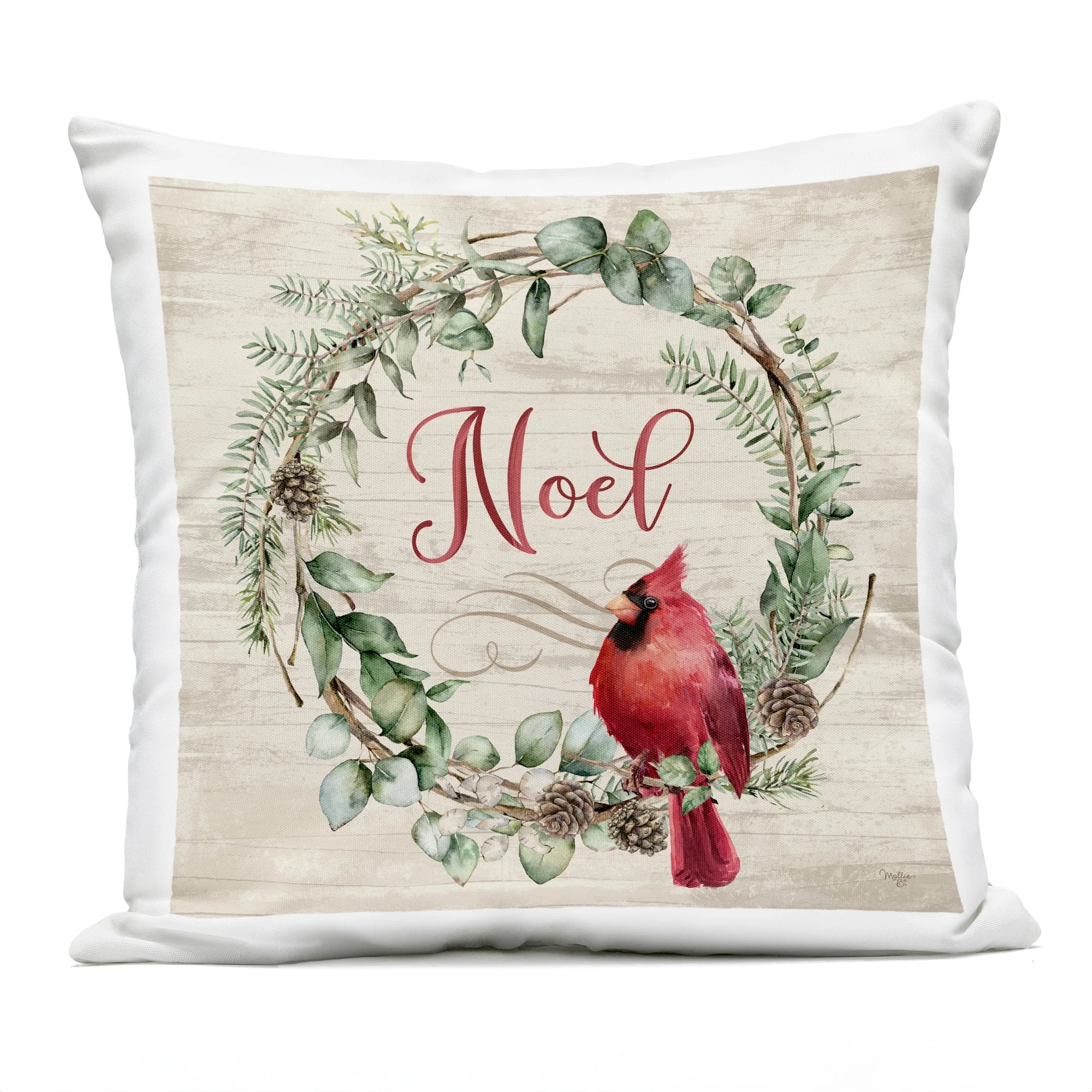 Stupell Noel Wreath with Cardinal Decorative Printed Throw Pillow Design by Mollie B.