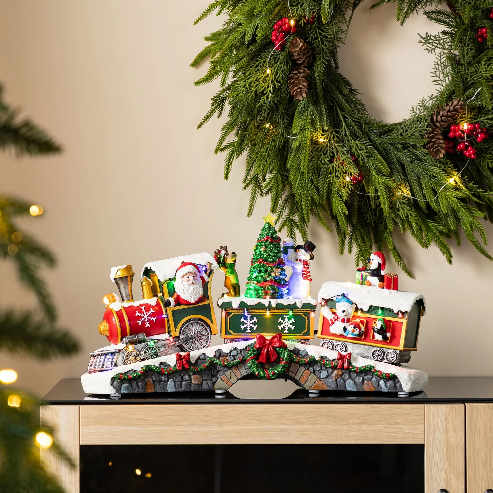 Glitzhome 20"L Lighted Christmas Santa Train Resin Village with Movement and Music