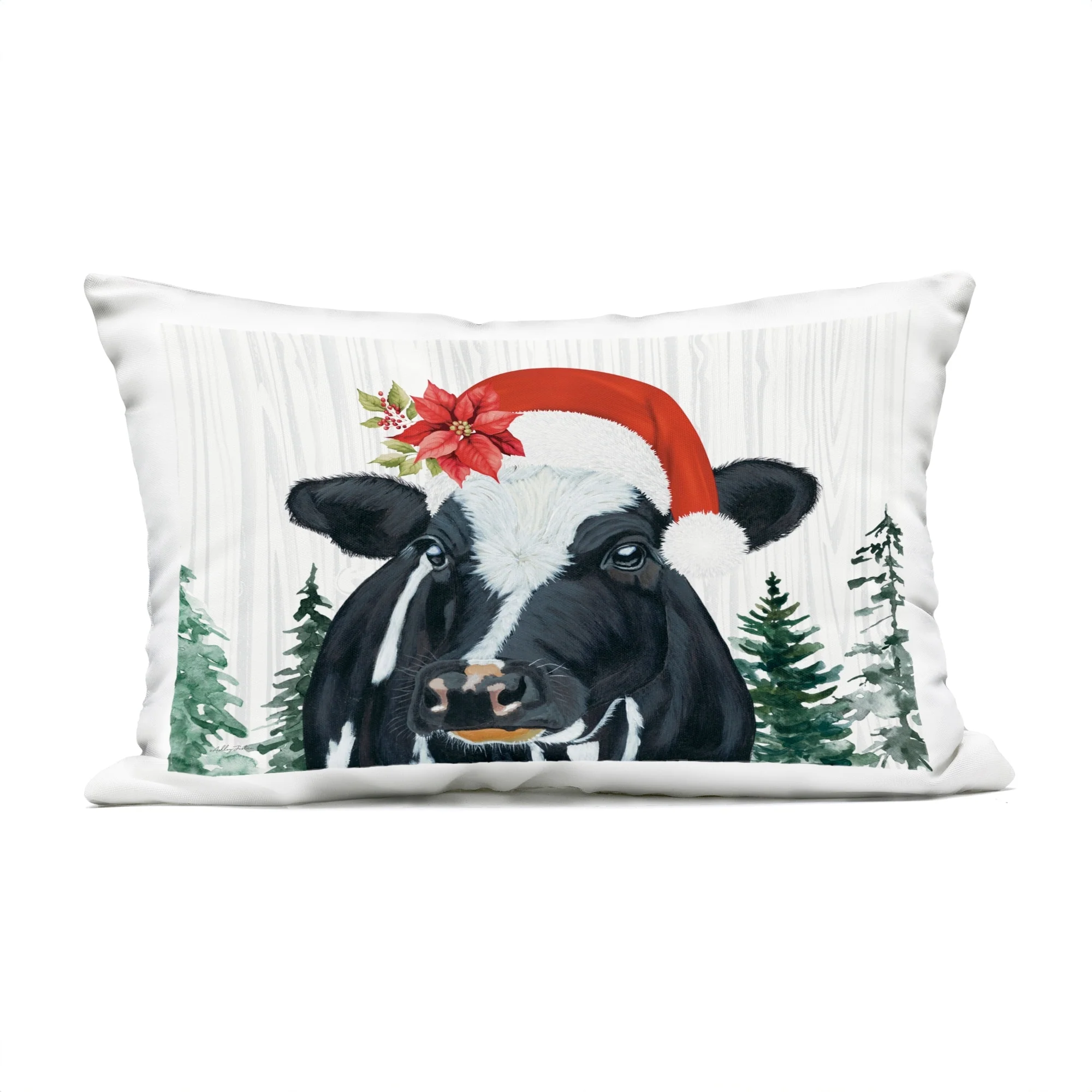 Stupell Christmas Hat Cow Portrait Printed Outdoor Throw Pillow Design by Ashley Justice