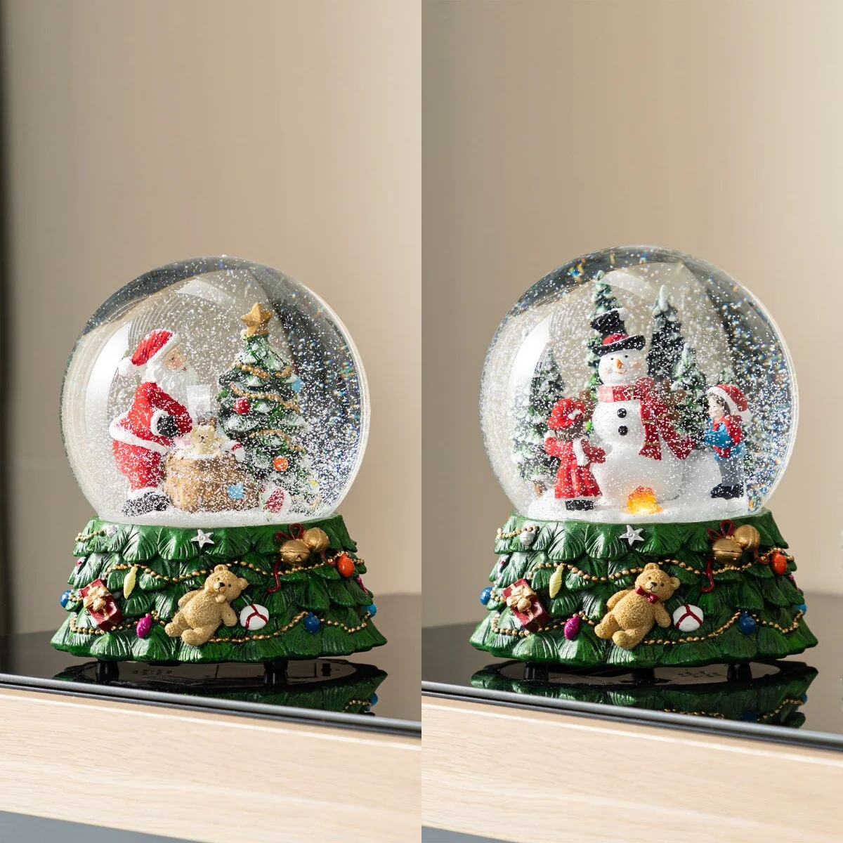 Glitzhome 100mm Christmas Resin Lighted Musical Snowflakes Santa Car Waterglobe