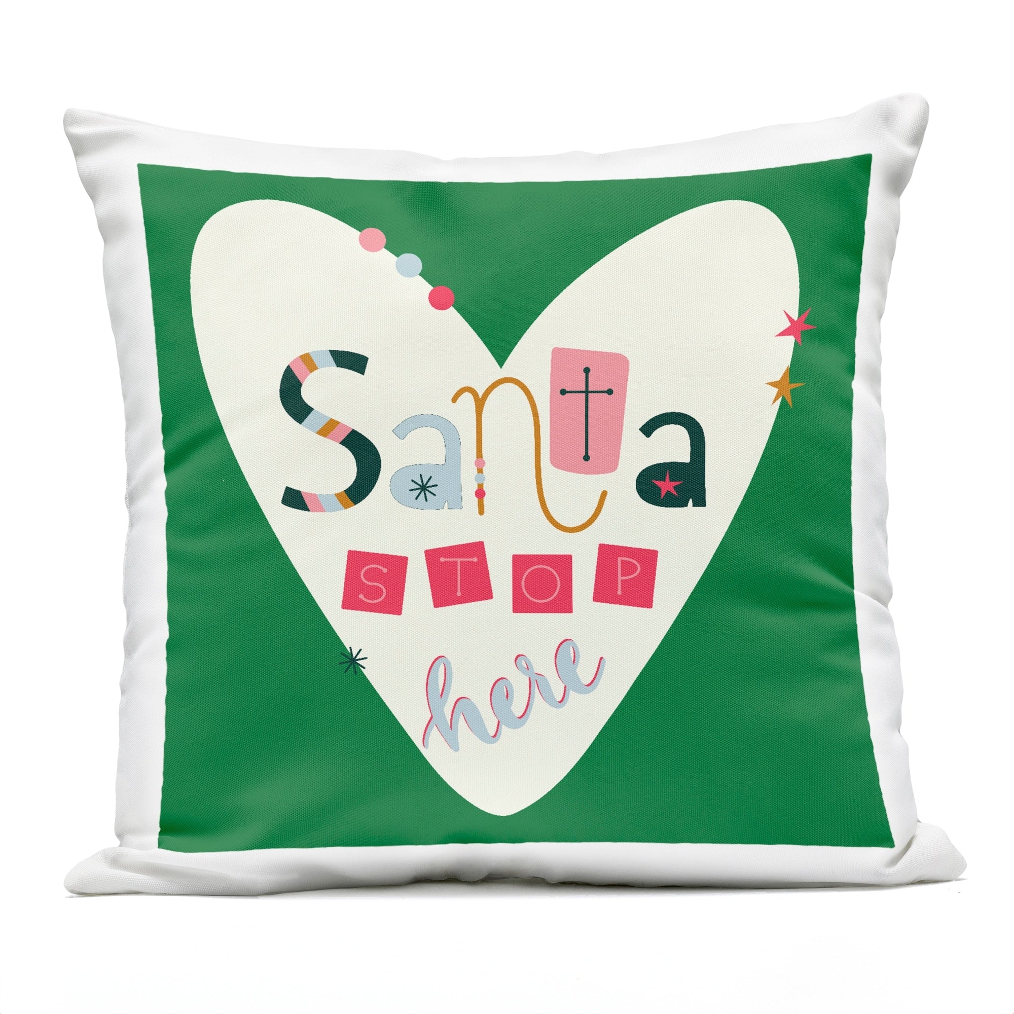 Stupell Santa Stop Here Heart Printed Outdoor Throw Pillow Design by Sazerelli Designs