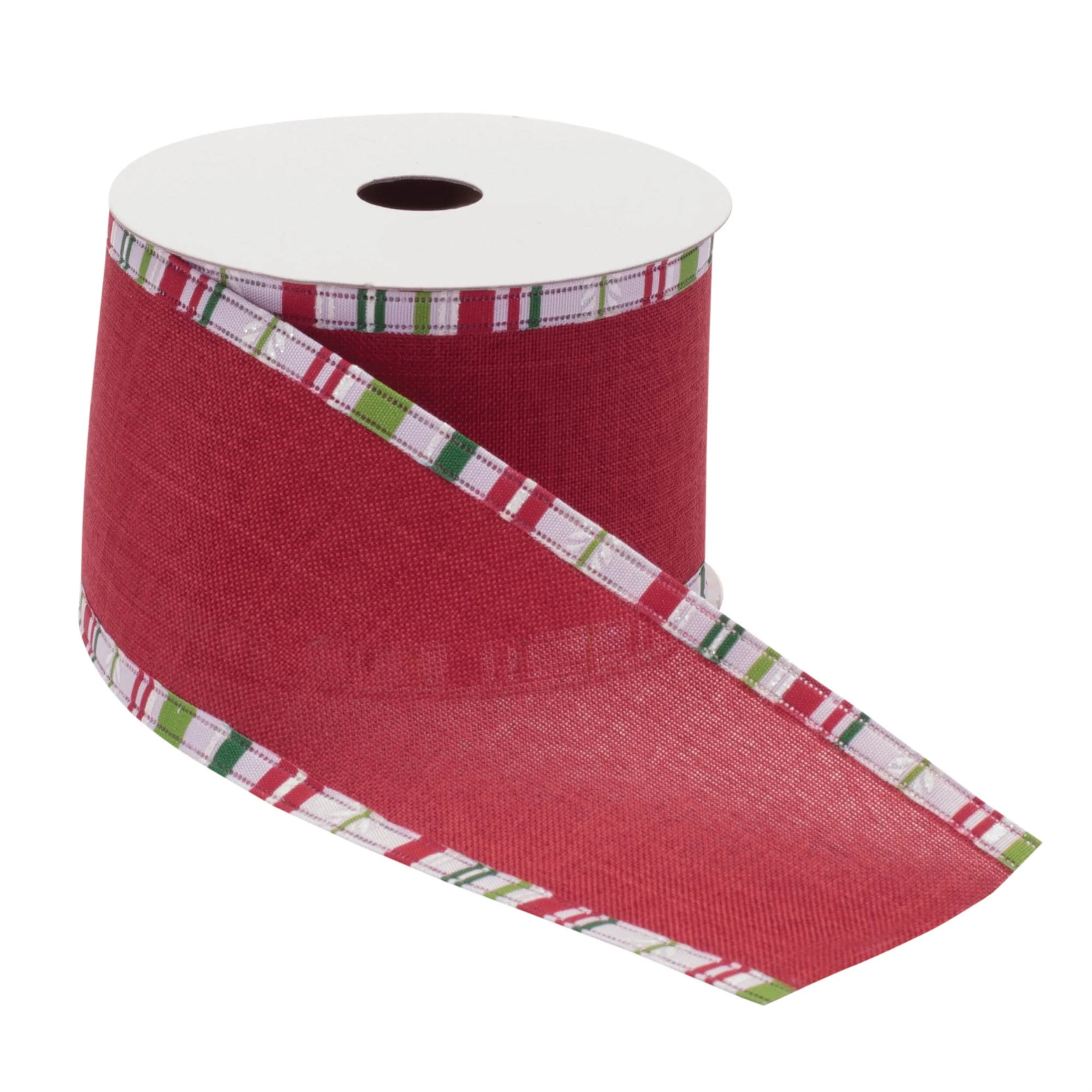 Red Polyester Striped Wired Ribbon Set of 2 for Crafts, Wreaths and Gift Wrap - 2.5” x 360”