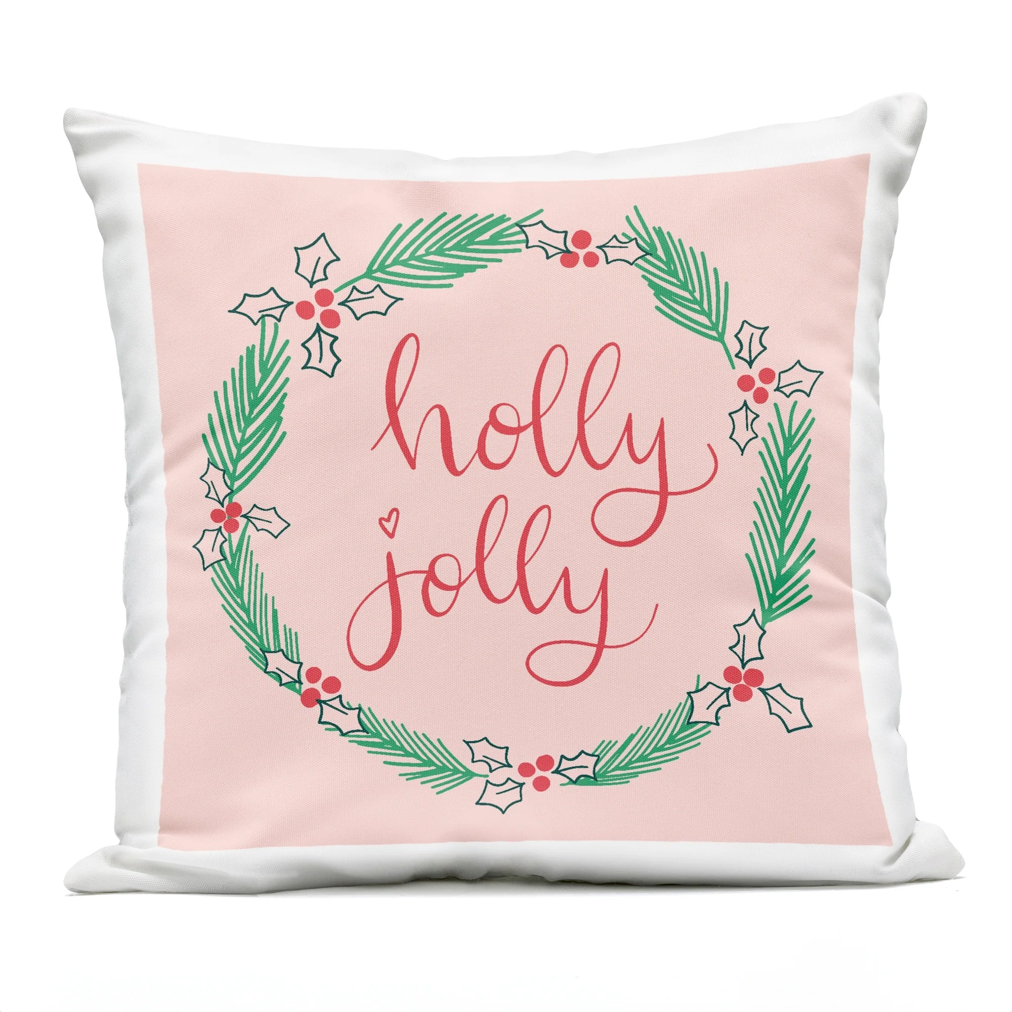 Stupell Minimal Holly Jolly Wreath Printed Outdoor Throw Pillow Design by Sazerelli Designs