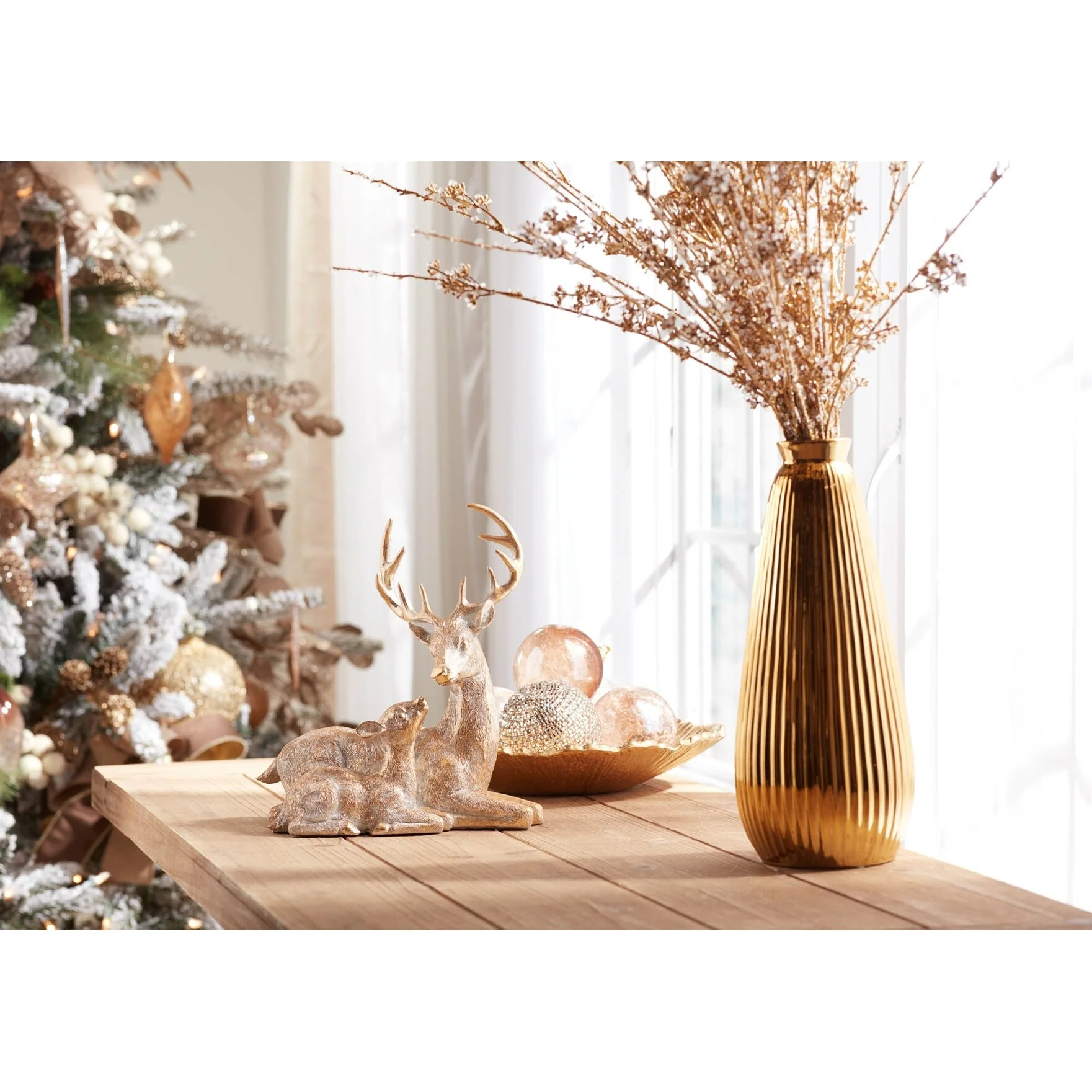 Festive Deer and Fawn Figurines Set of 2 for Holiday Shelf Decor - 9" x 5.25" x 10"