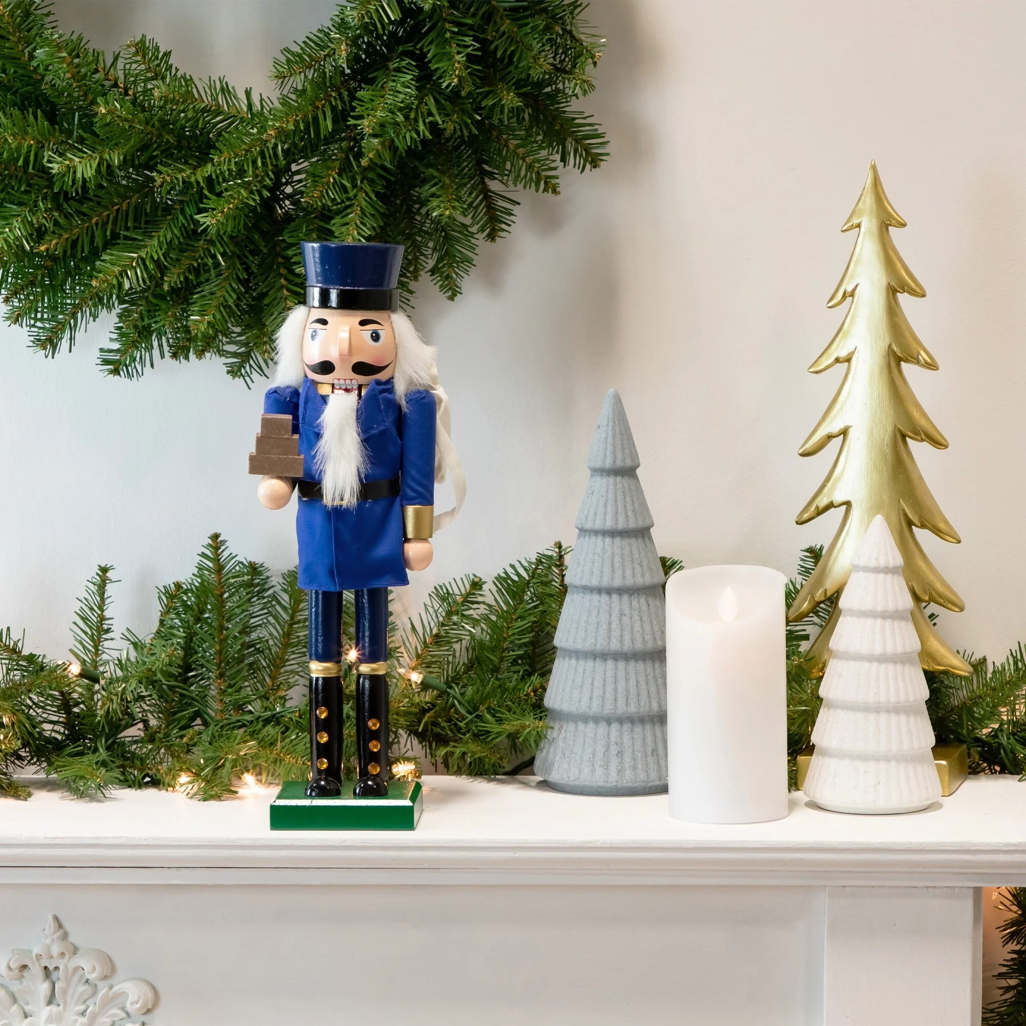 14" Blue and Gold Wooden Mail Carrier Christmas Nutcracker