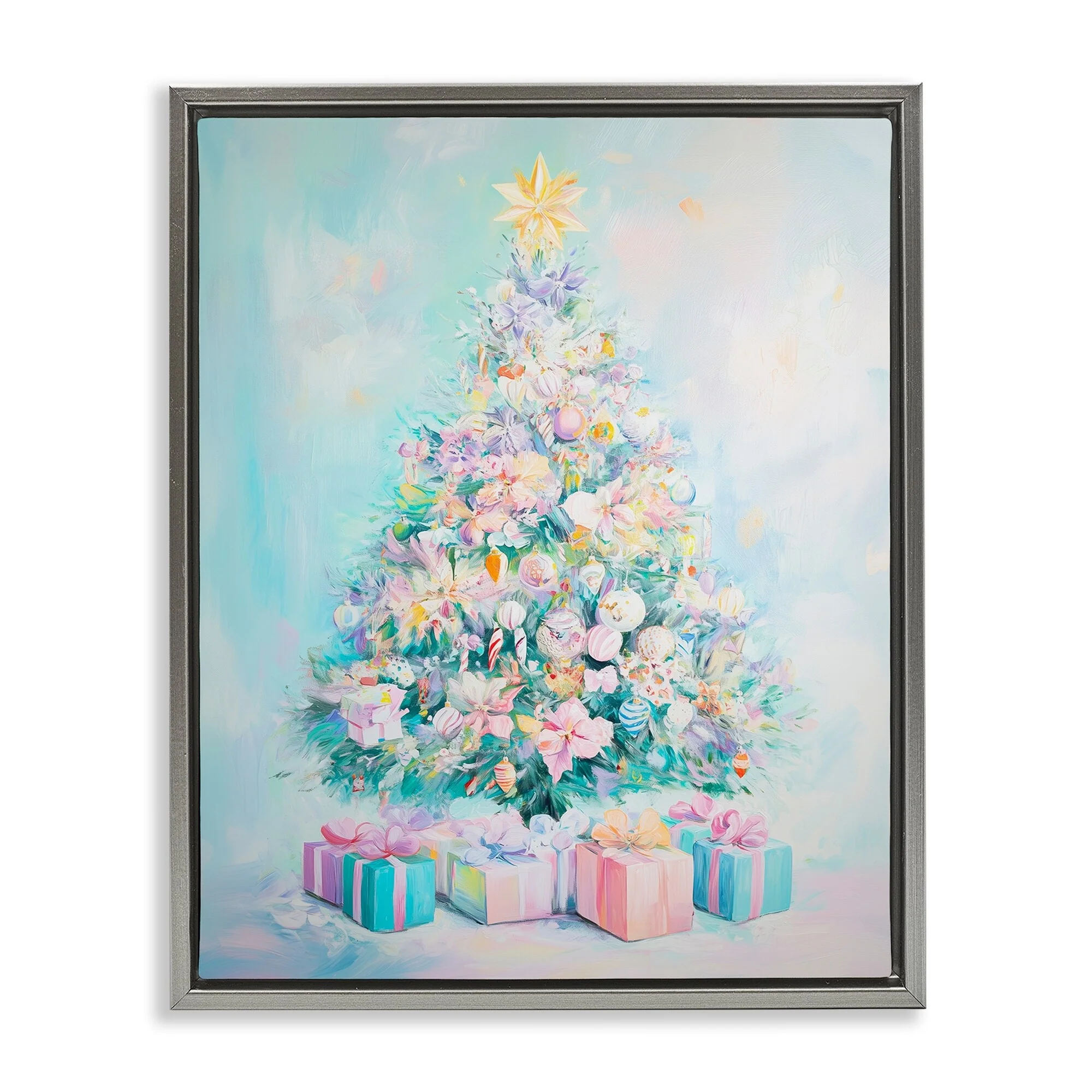Stupell Pastel Christmas Tree on Blue Framed Floater Canvas Wall Art Design By Arlington Prints