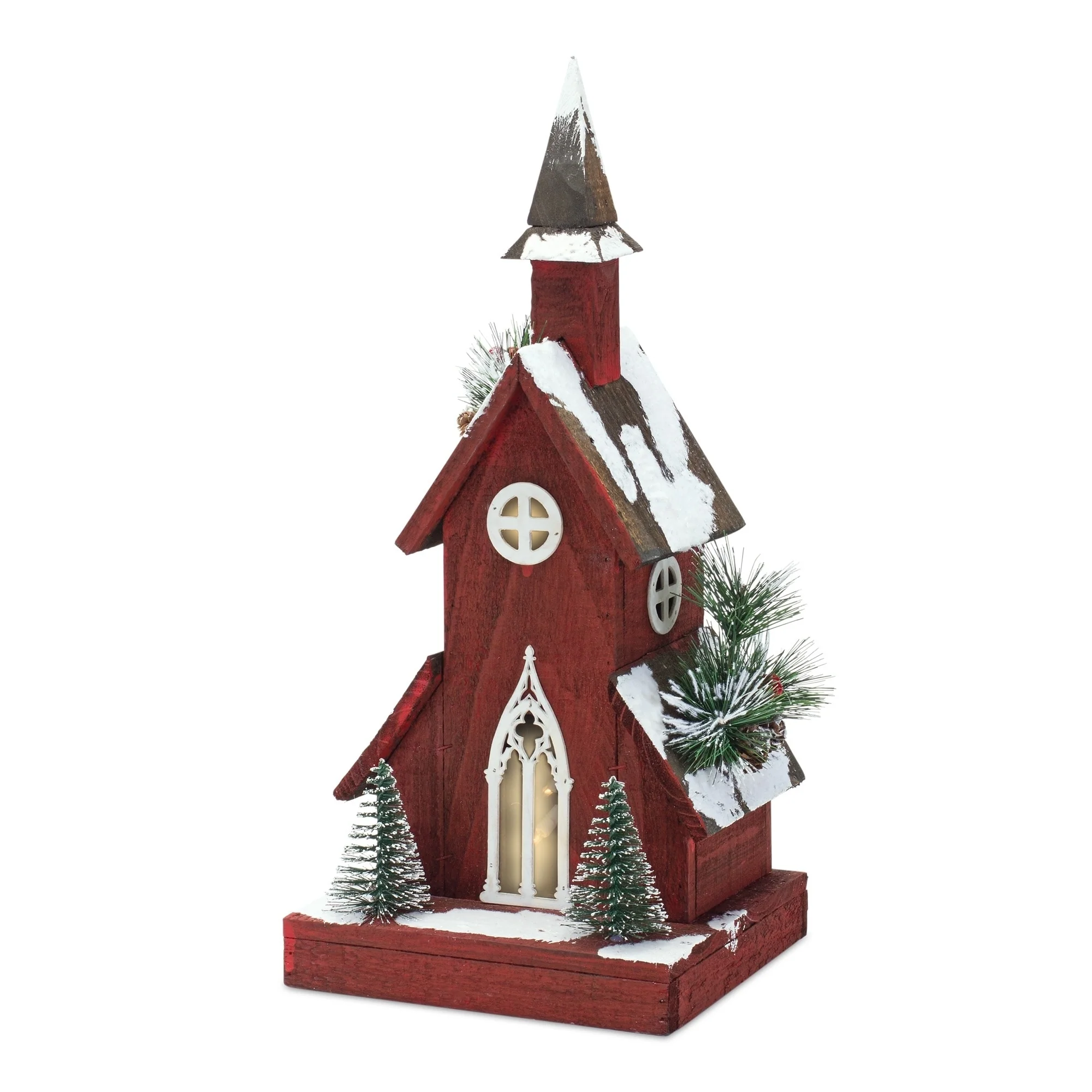 LED Wooden Christmas House Decor with Snow Trees and USB Cord - White, Green