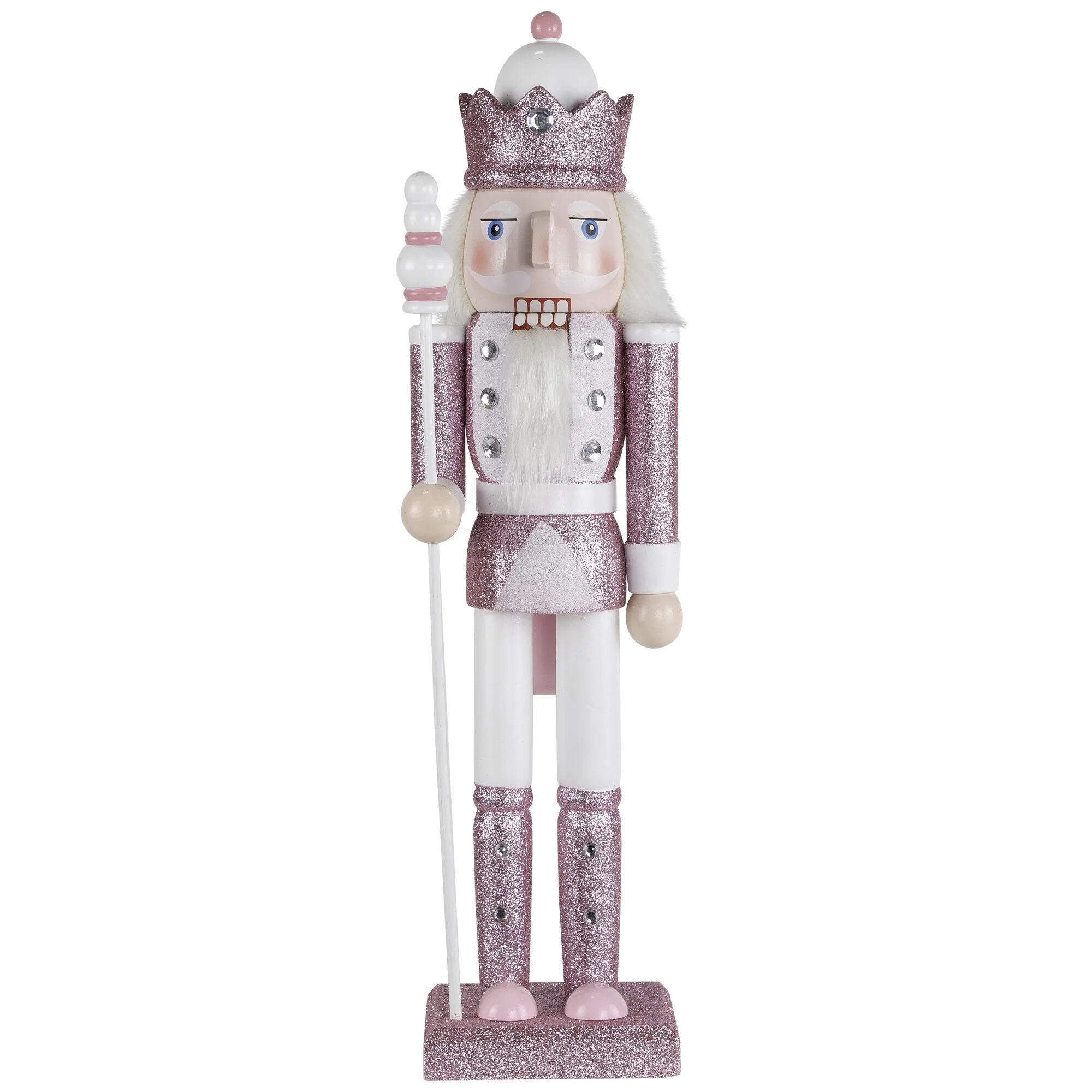 Jeweled and Glittered Nutcracker King Christmas Figure - 15" - Pink and White