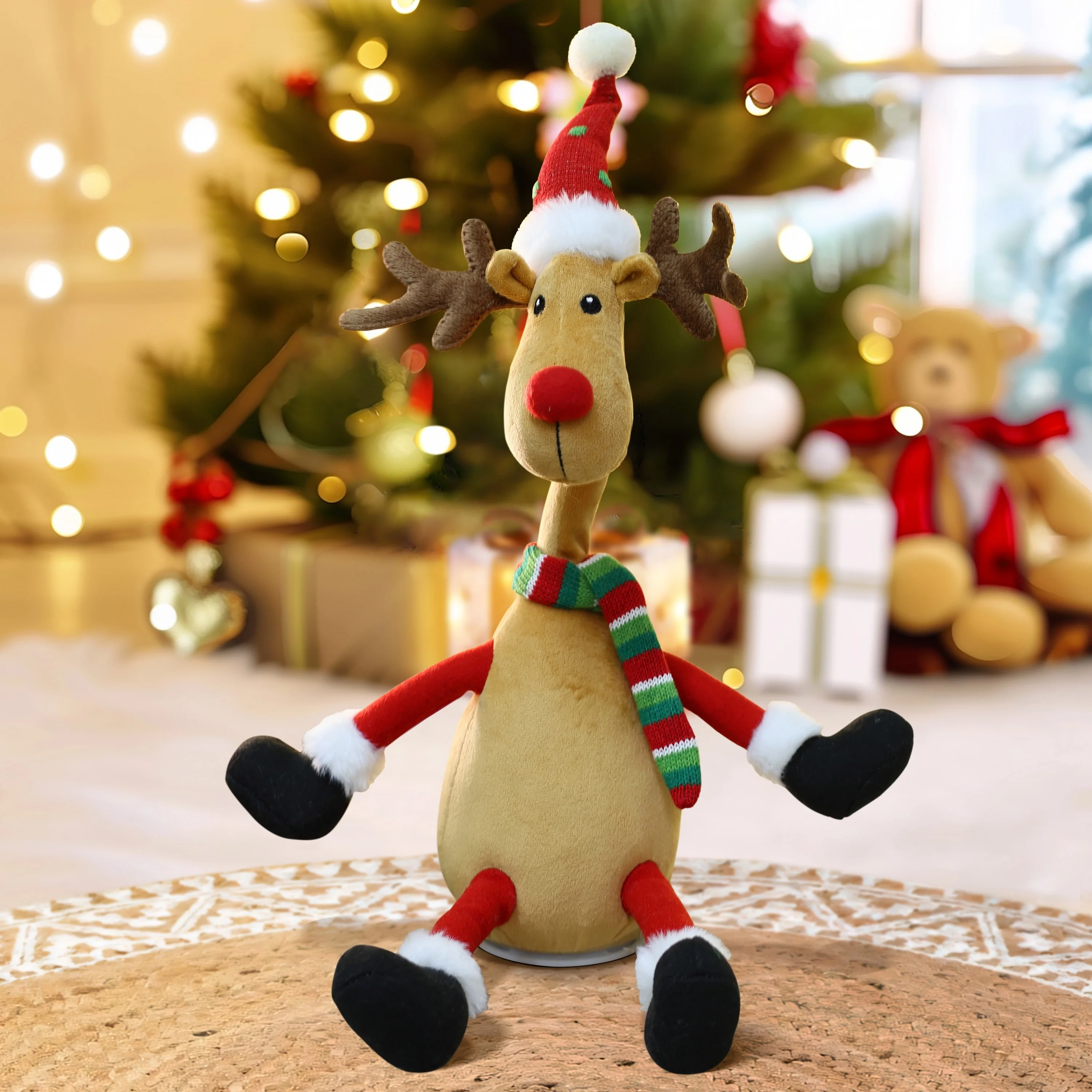 Animated Singing 18.5" Tall Reindeer Holiday Decoration, Battery Operated - 18.5" H x 9" W x 5.5" D