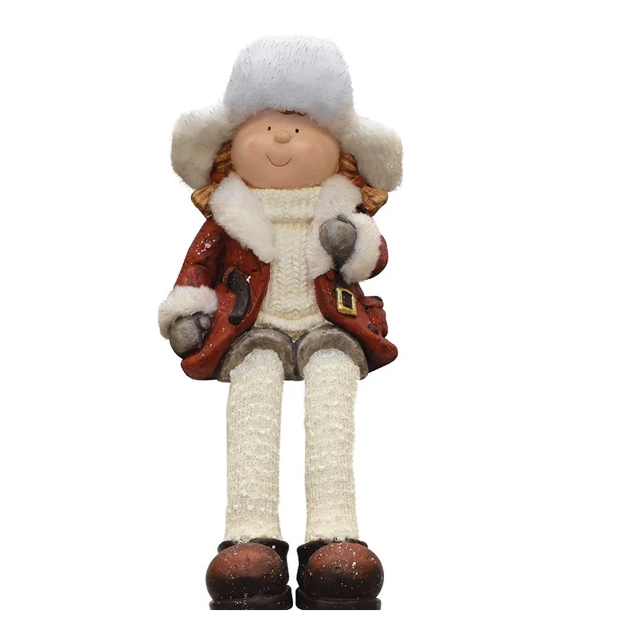 Sitting Young Girl in Trapper Hat Christmas Figurine - 19"