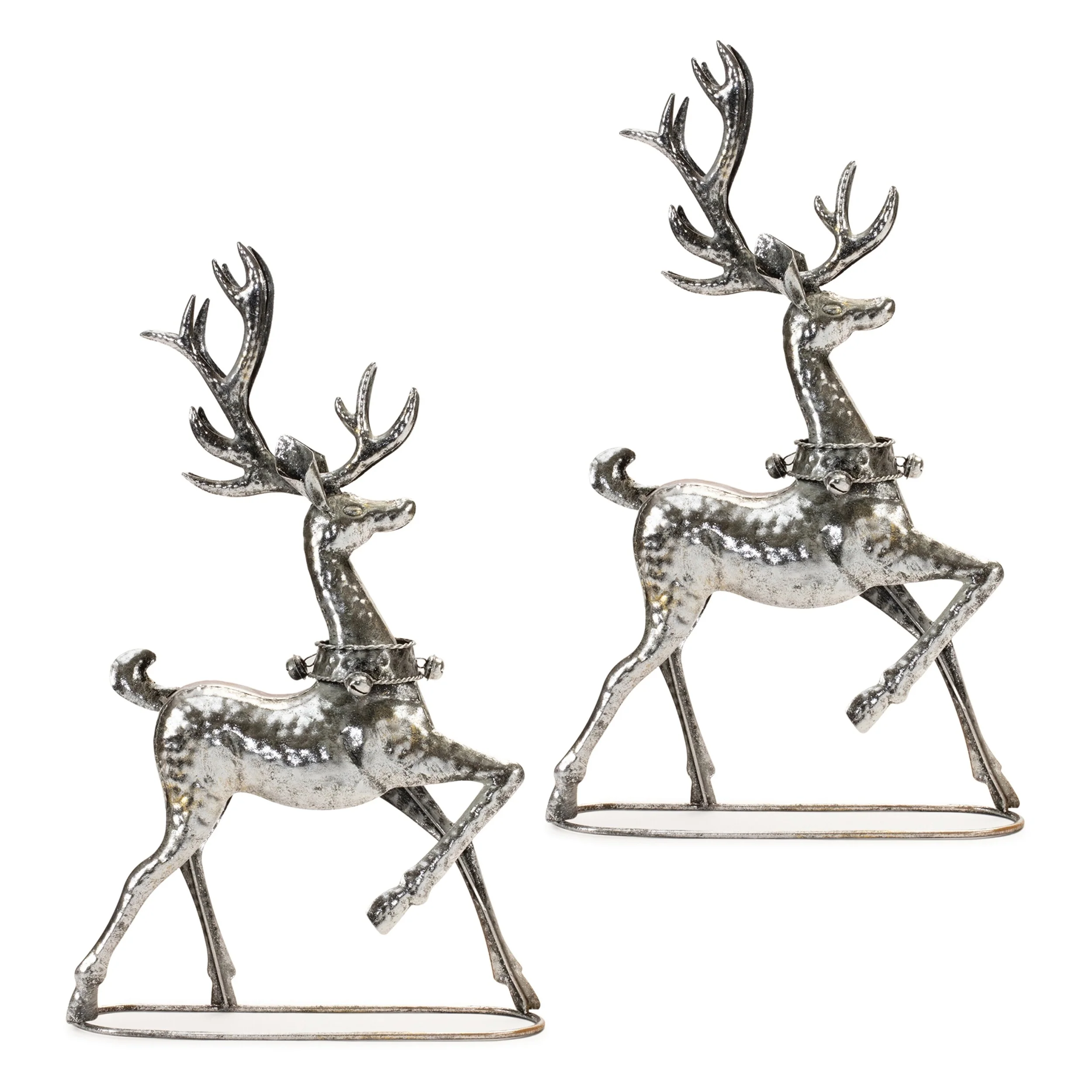 22” Set f 2 Silver Reindeer Decorations for Christmas Display Metal Holiday Statues for Fireplace or Table