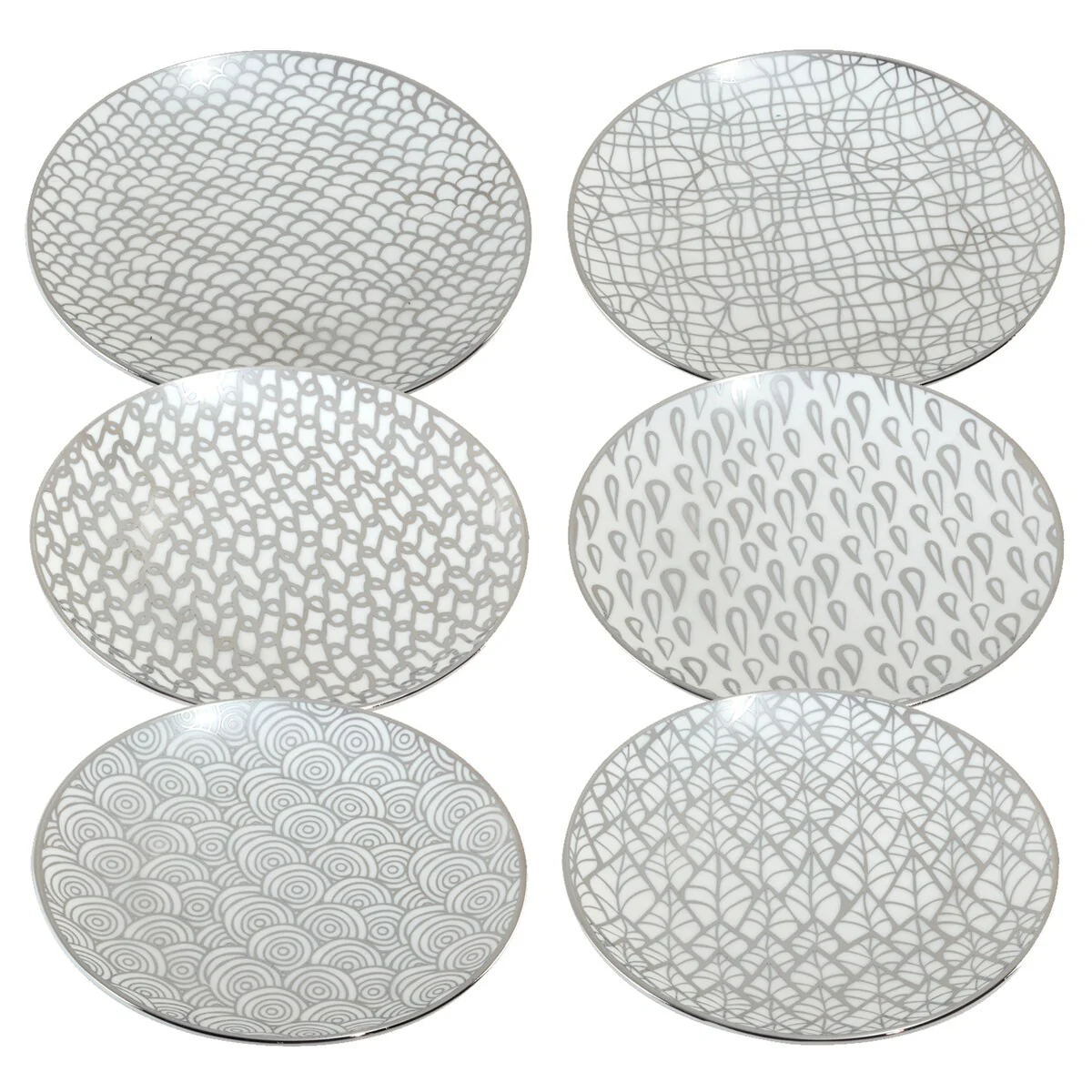 Certified International Mosaic Silver Plated 6" Luncheion/Canape Plates Set of 6 Assorted Designs - 6-inch