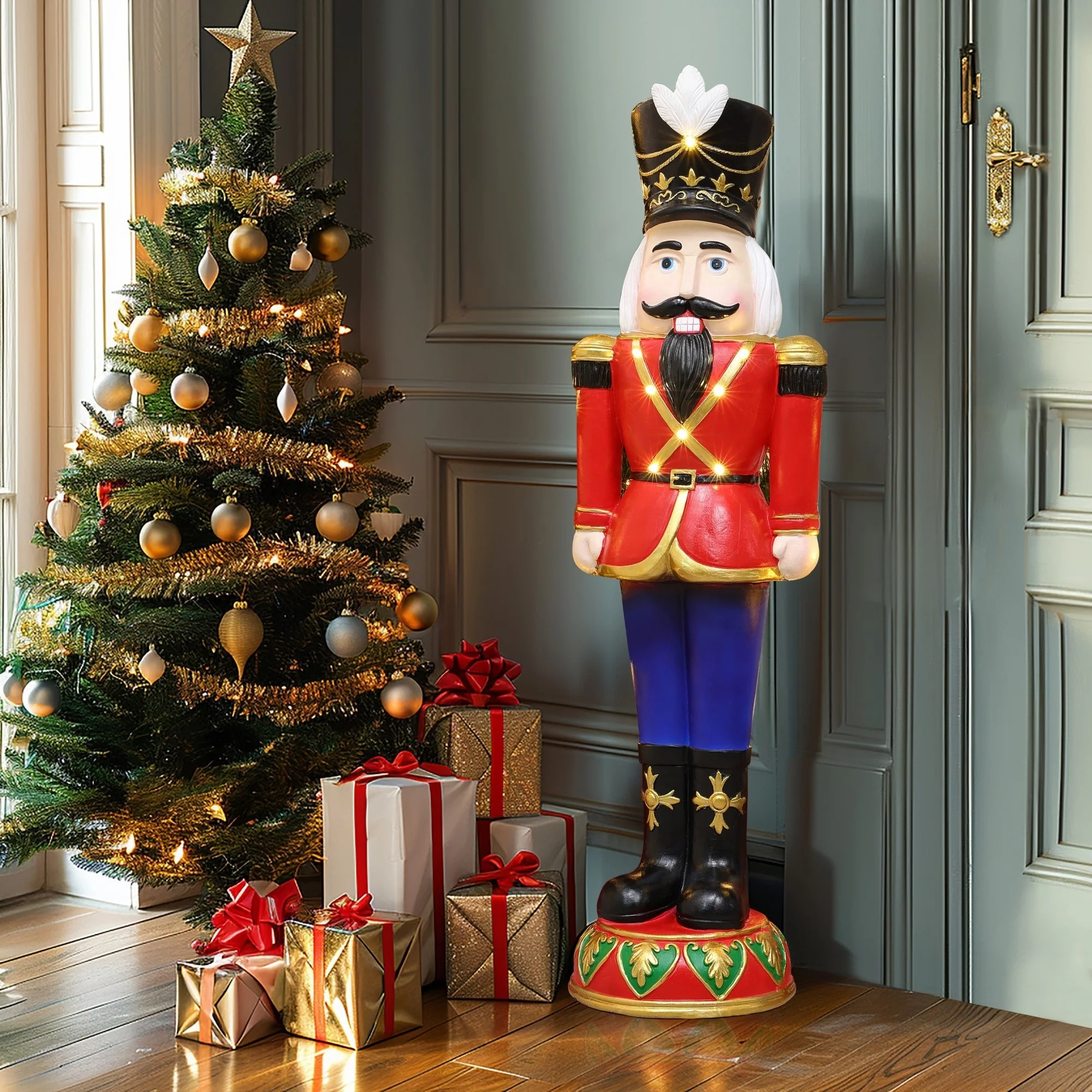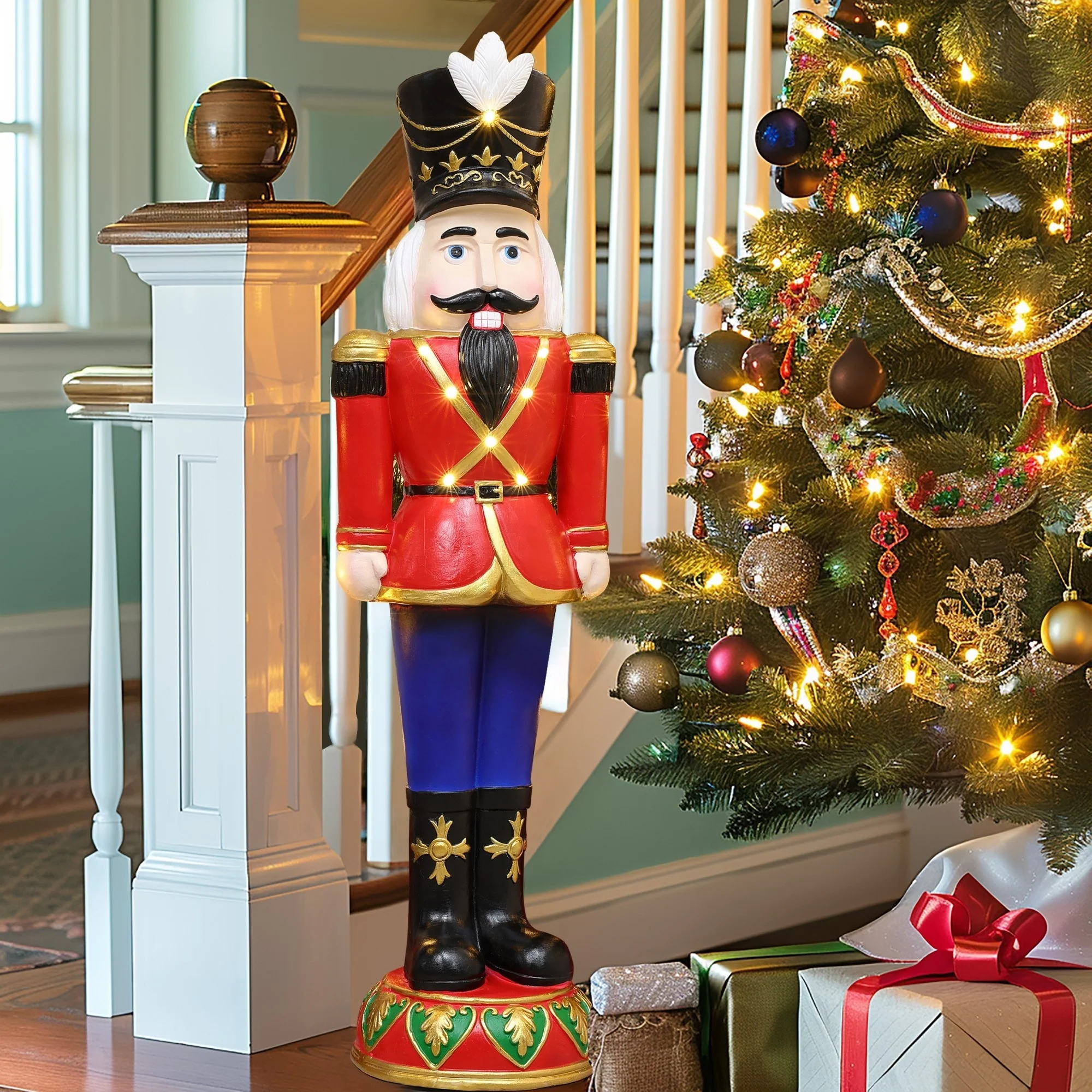 3Ft Tall Traditional Nutcracker Soldier in Red with Lights - 36.42" H x 10.63" W x 8.66" D