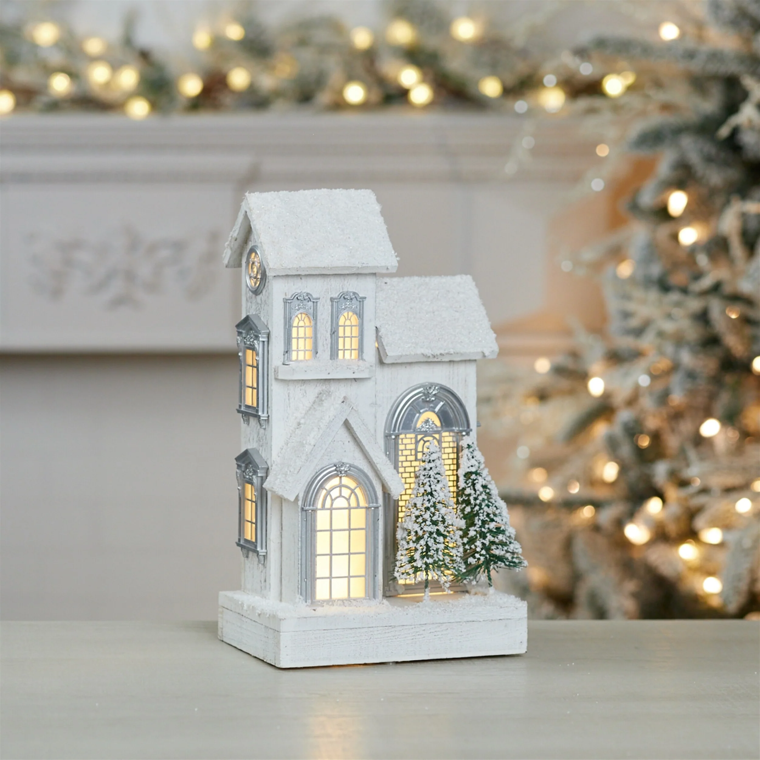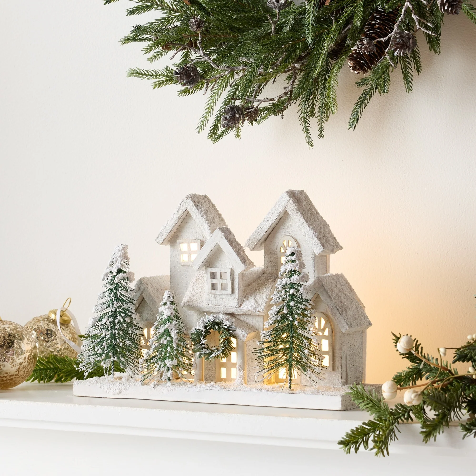 LED Lighted Flocked Holiday Village Christmas Decoration - 12.5"