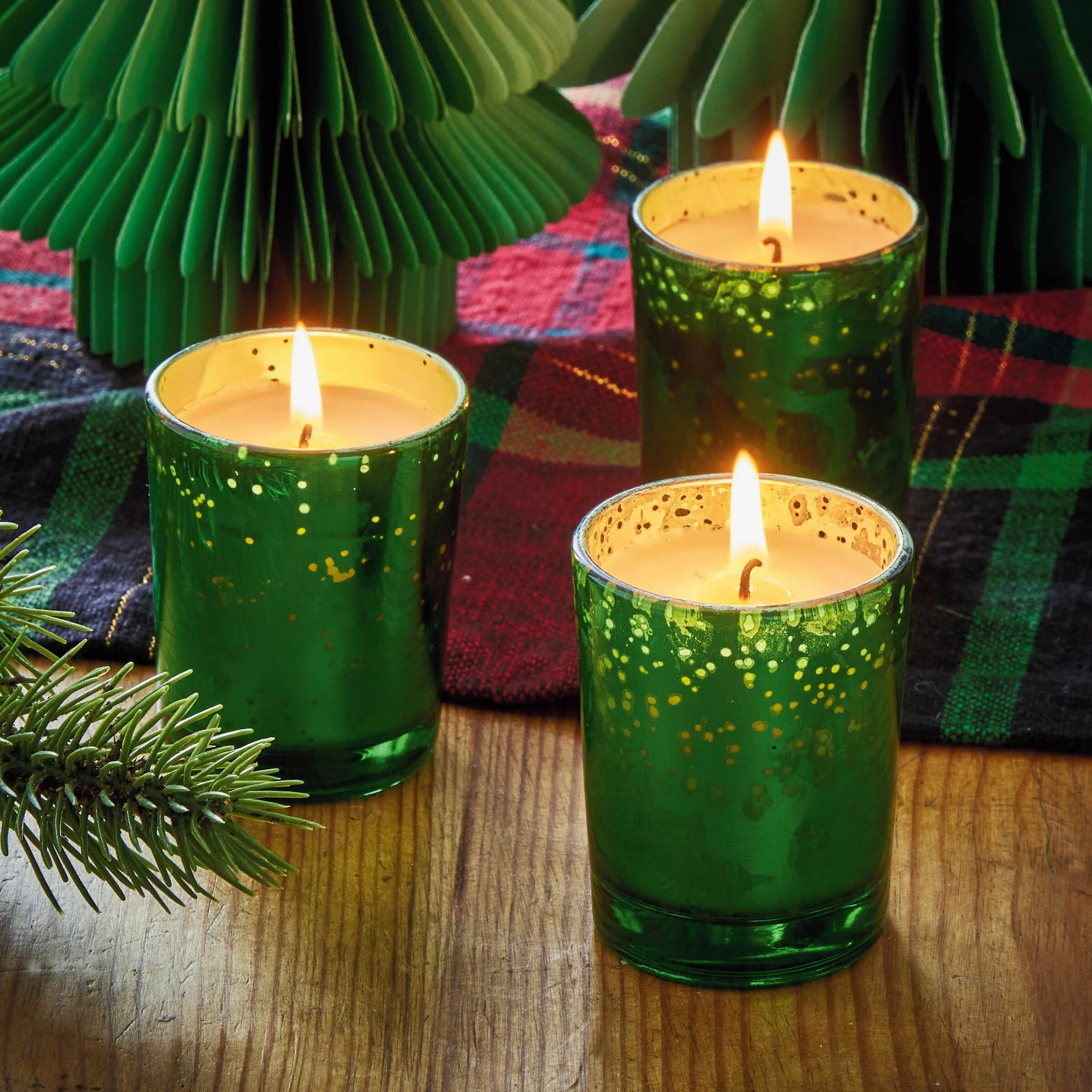 Christmas Fir Mercury Votive Candle S/3