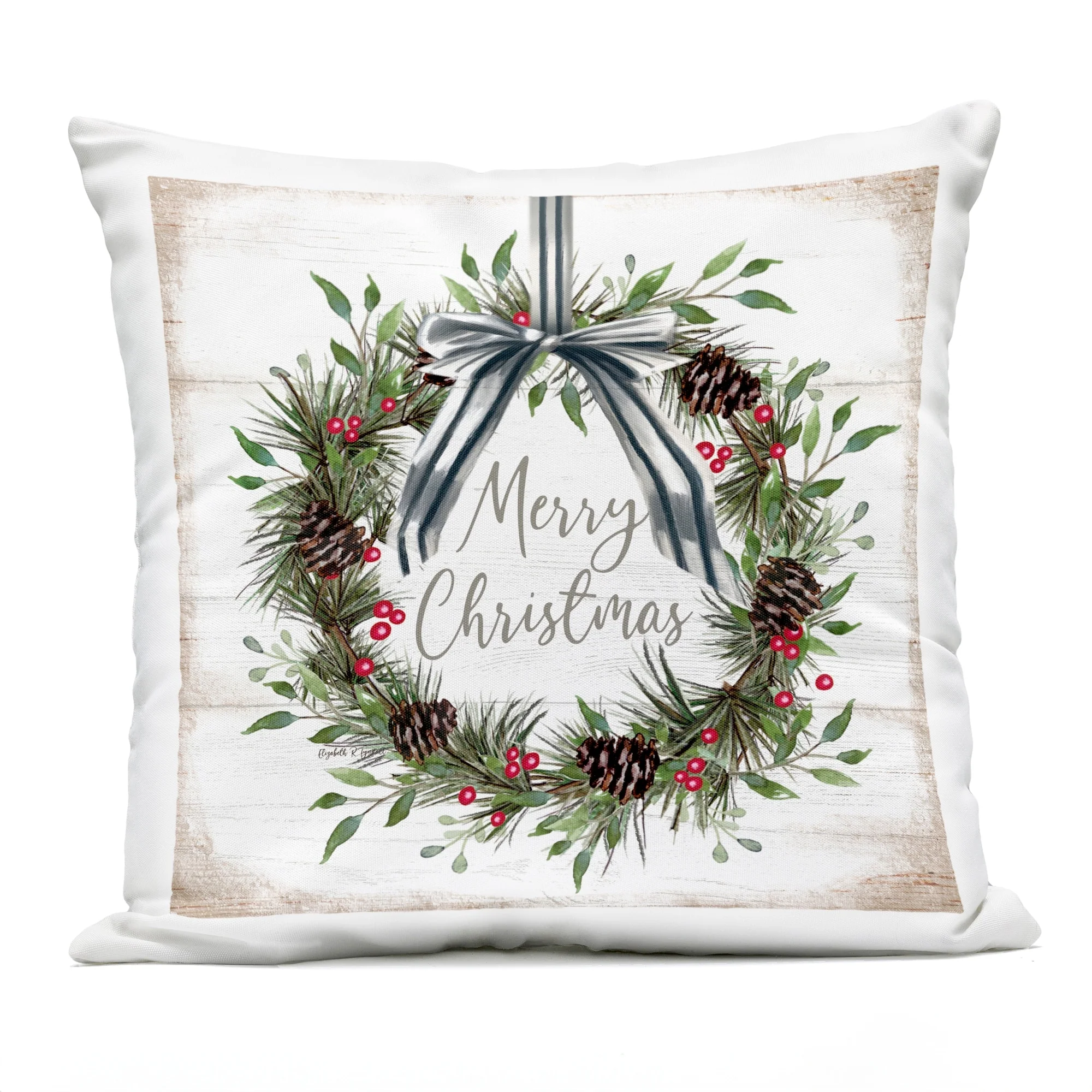 Stupell Rustic Christmas Pinecone Wreath Printed Outdoor Throw Pillow Design by Elizabeth Tyndall