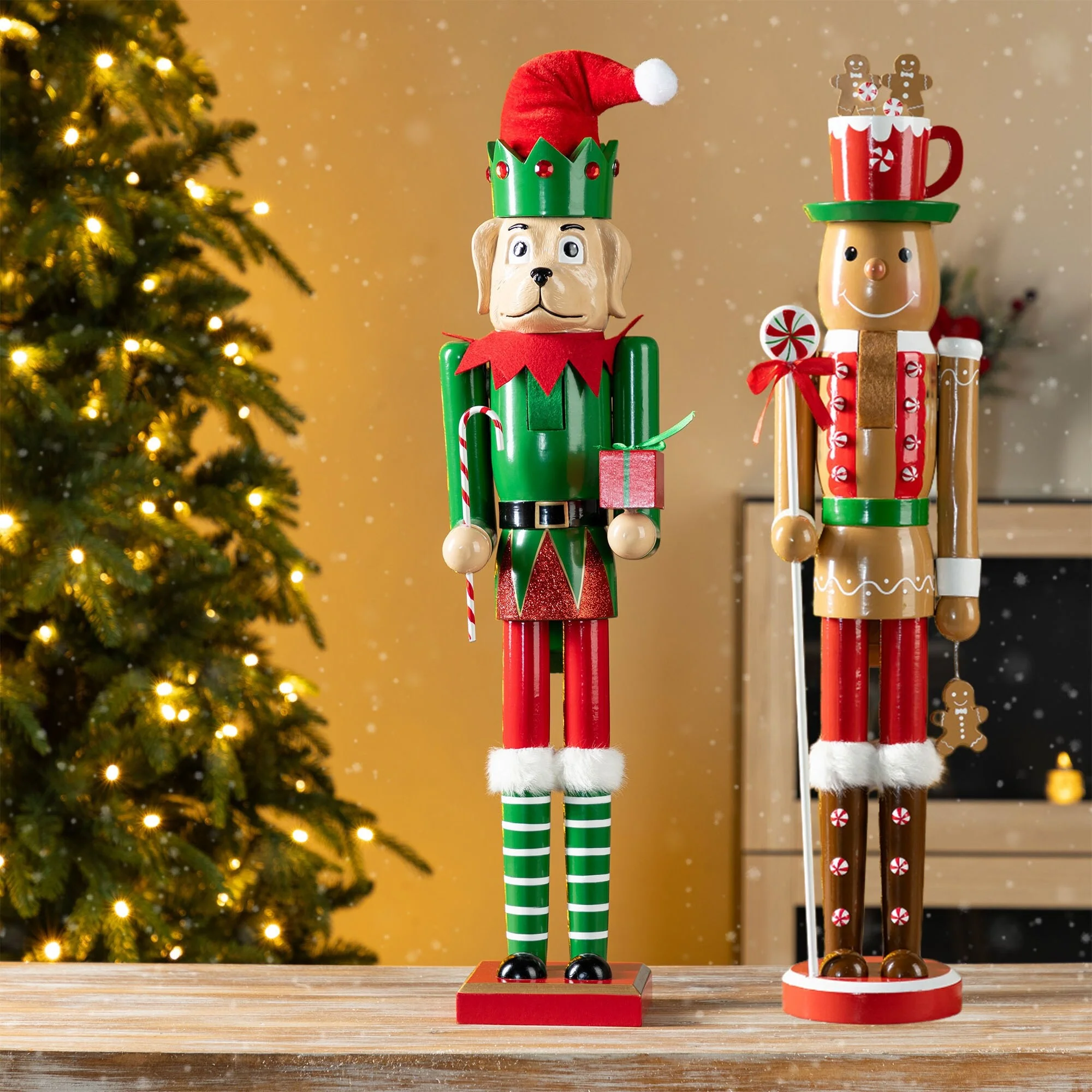 Glitzhome 24"H Wooden Christmas Gingerbread Man or Elf Dog Nutcracker