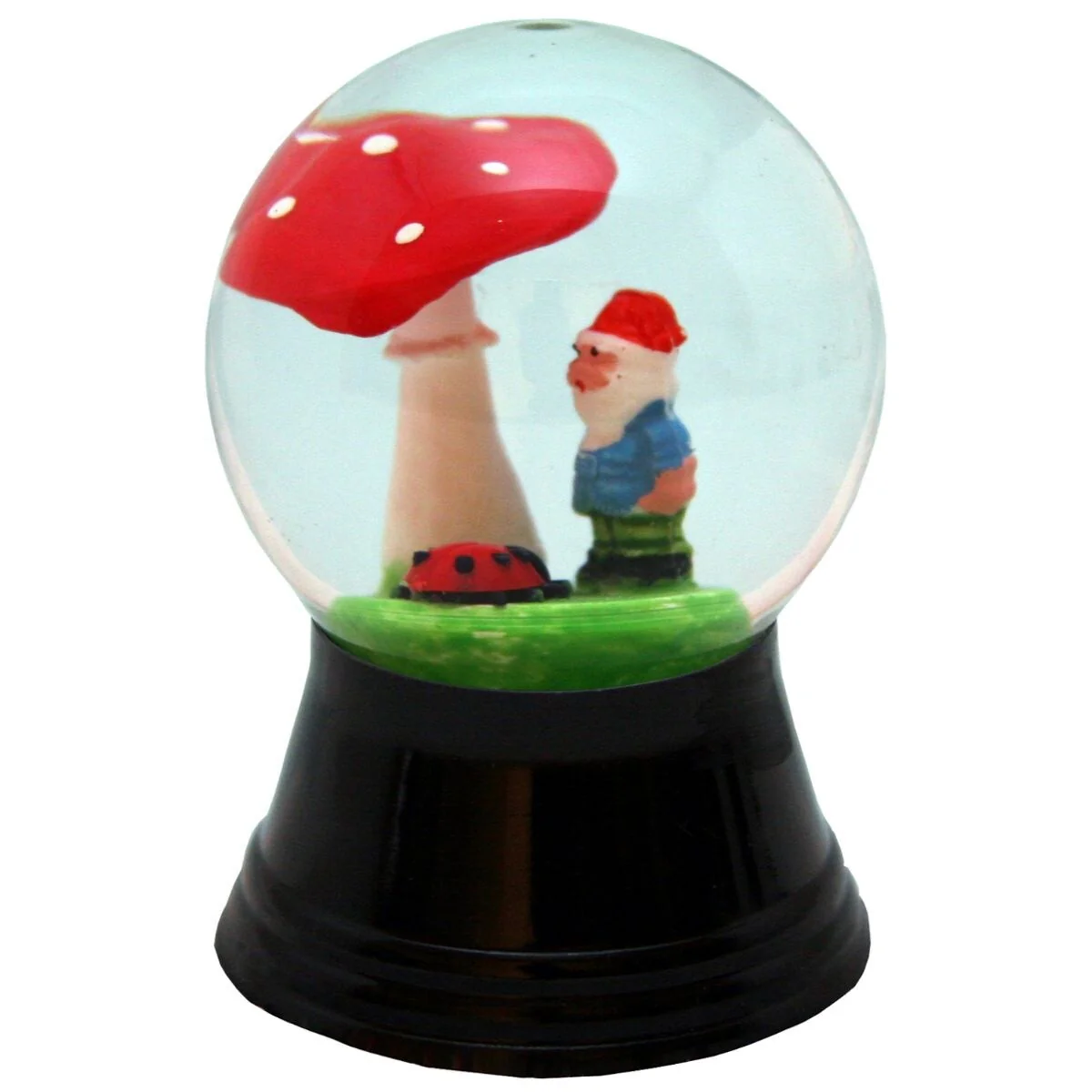 2.5" Green Red Perzy Snow Globe Small Dwarf Ladybug Mushroom decor