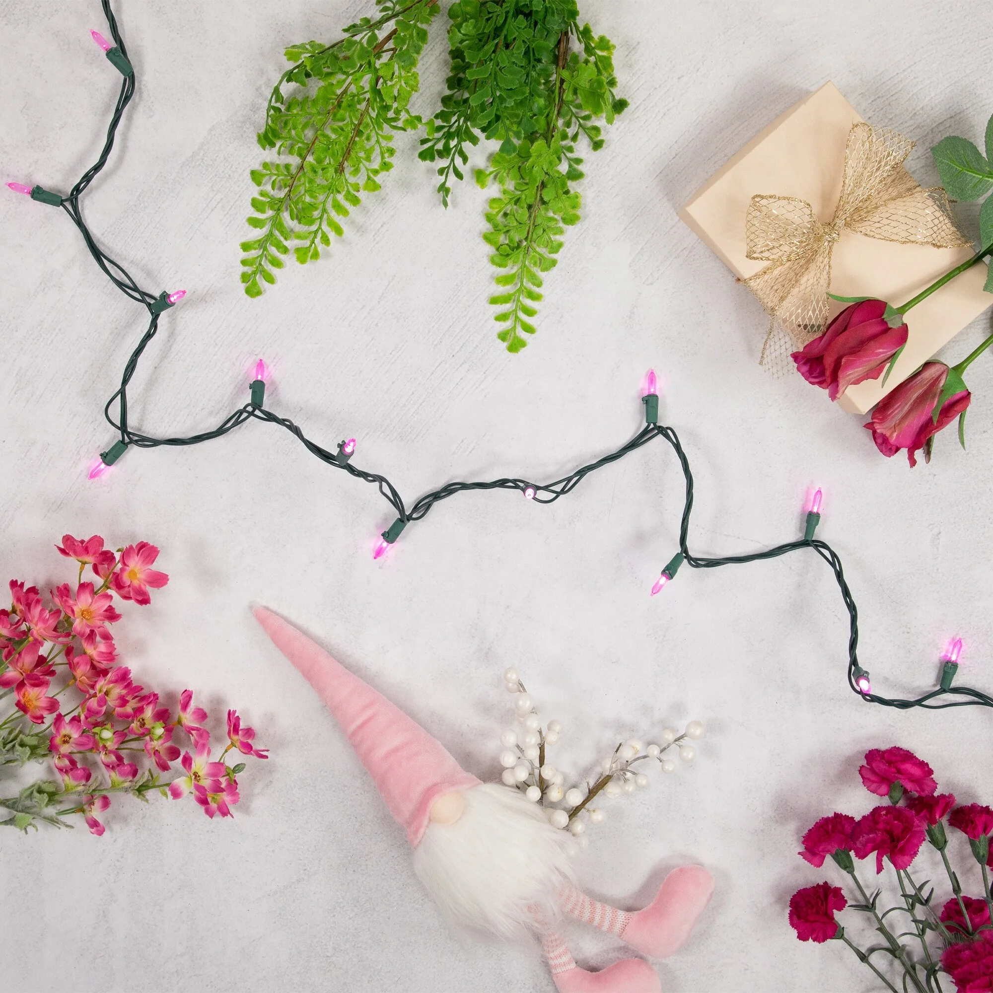 Color: pink bulbs / green wire