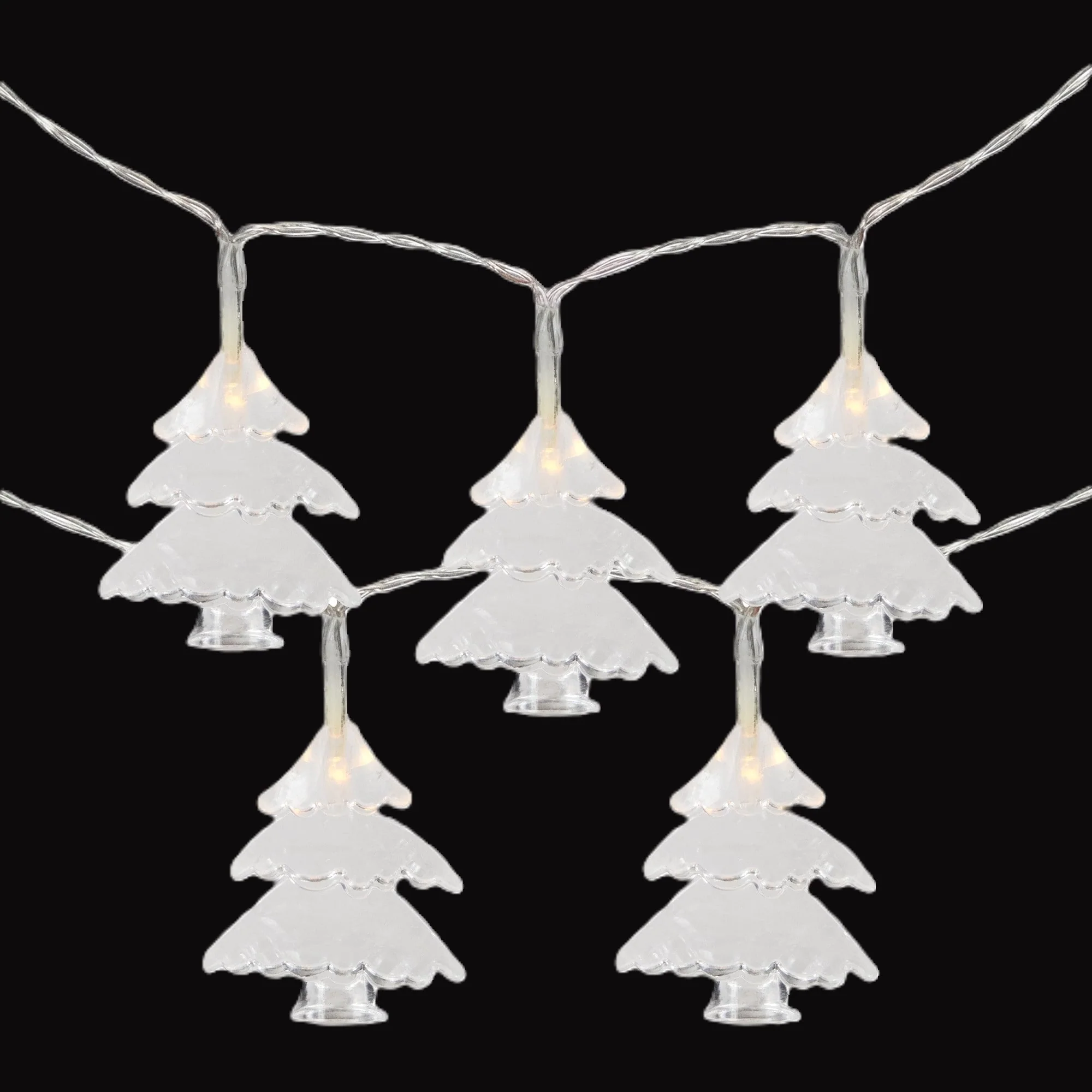 These fun, Christmas tree string lights are a must-have for the holidays. 10 LED lights shine through the clear trees and add the perfect glow. Battery-operated means they can be placed anywhere. Perfect for mantles, trees, or as part of your holiday table centerpieces.