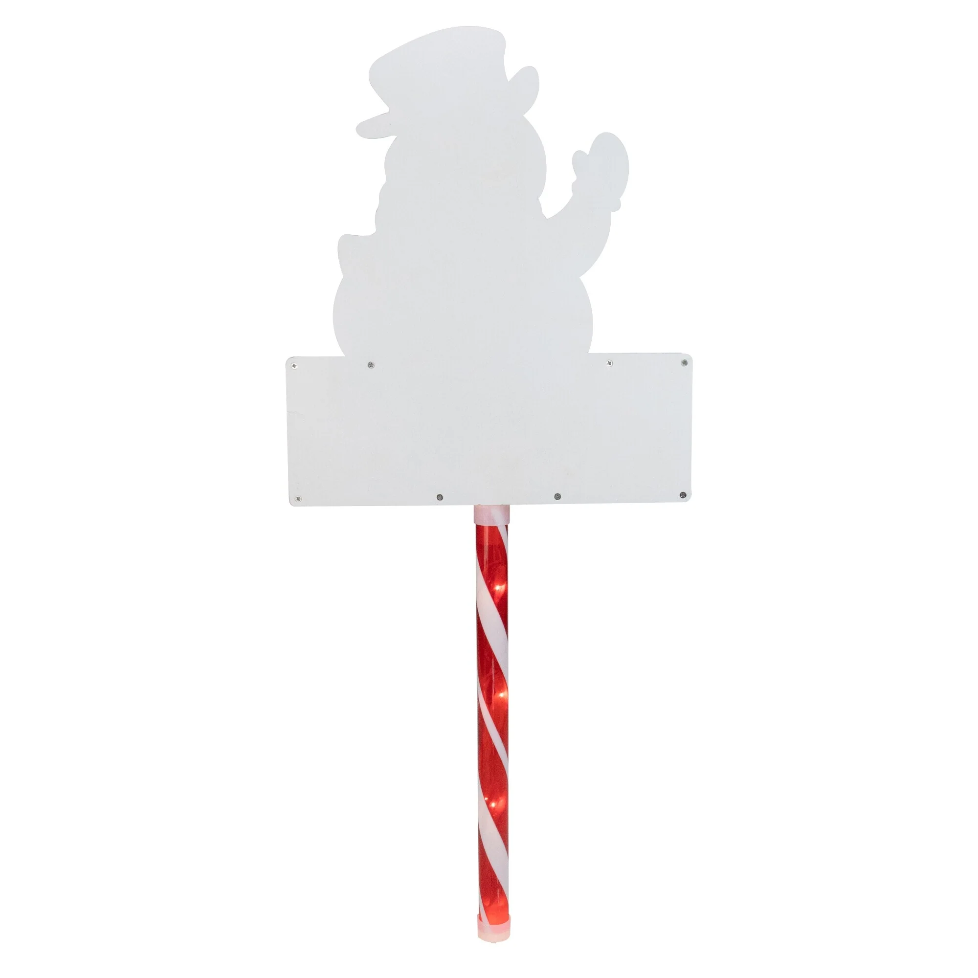 Festively accent your lawn or walkway with this cheerful ground stake. A snowman waves with a cheerful holiday message below. Quick and easy installation lets you add a striking feature to your lawn in minutes. Great decoration to welcome your friends and family to your home for Christmas gatherings.