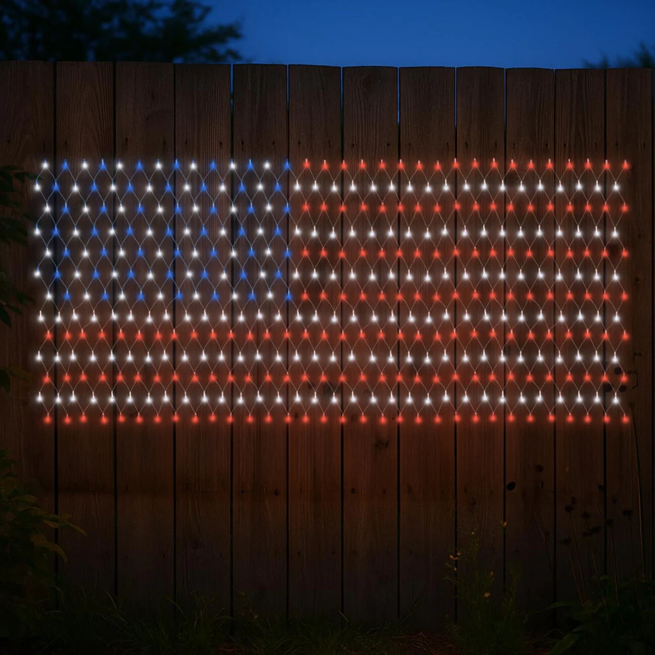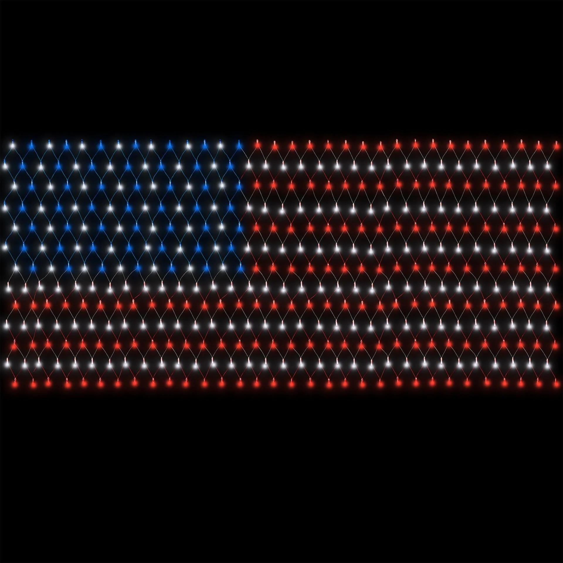 Enhance your patriotic spirit with the 416 LED 7ft x 3.5ft with 16 ft lead wire USA Net Lights, perfect for both indoor and outdoor celebrations. This vibrant lighting display features 416 high-quality, energy-efficient LEDs, arranged in a net design that effortlessly drapes over surfaces such as bushes, fences, or walls. With its bold red, white, and blue colors, this net of lights transforms your home or yard into a dazzling tribute to the American spirit. Ideal for the 4th of July, Memorial Day, or any patriotic event, these lights add a festive glow to your decor.