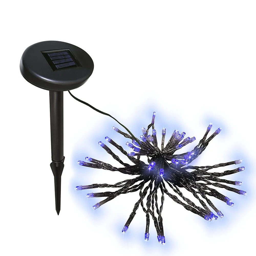 No energy costs. No outlet needed.Solar panel converts sunshine into electricity during the day and lights turn on automatically at night. Lights stay lit for more than 8 hours at night.Easy to operate and install. Solar panel comes with garden stake.Create an enchanting warm atmosphere in your home, garden, patio, lawn, porch, or yard and illuminate the night with these beautiful lights.Two settings: Flash or Solid. 50 lights. 19.5 in length. Space between each LED: 4.6 inches.