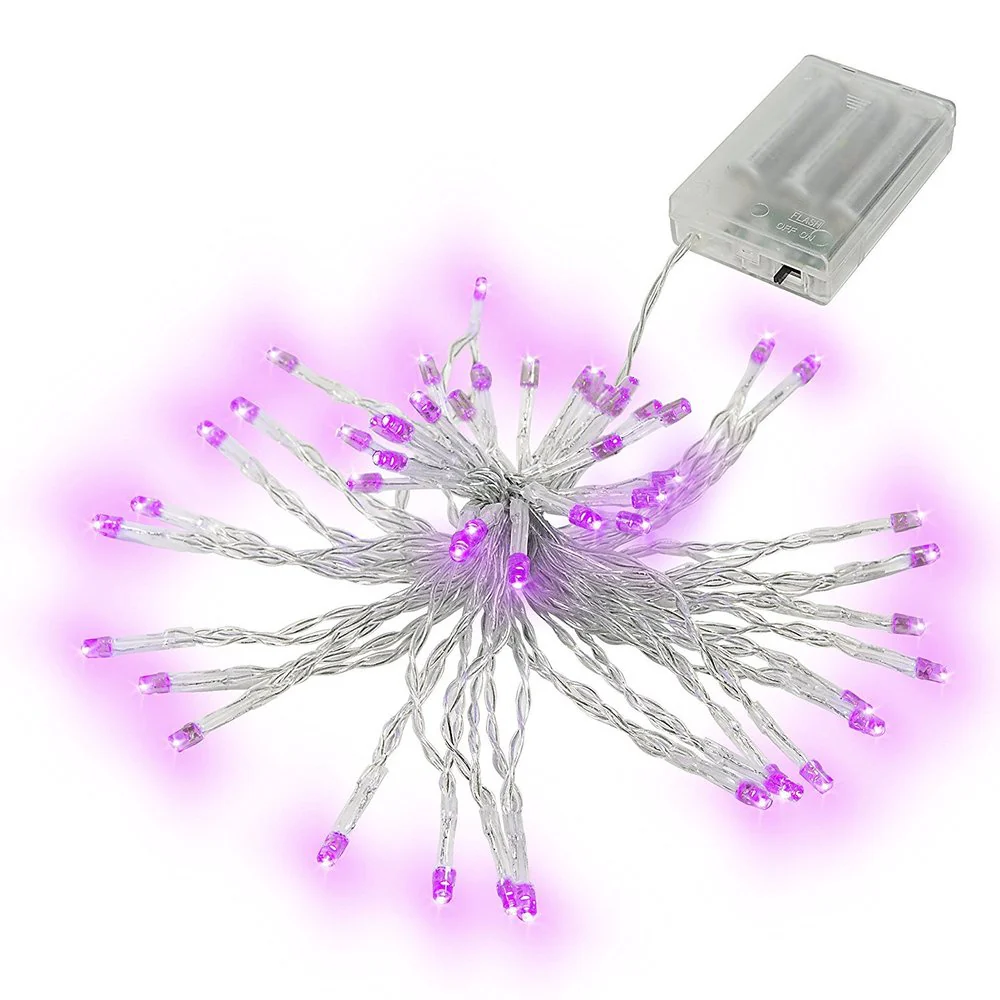 Use the string lights to cover virtually any area or structure and brighten up any space. Great for both indoor and outdoor, landscapes, grass area, decks, docks, and more.Perfect for the holidays, birthdays, wedding and party decorations, and much more.Powered by 3 AA batteries. Batteries are not included. Portable, easy to use and storeMode: Steady/Flash. Color: Pink. 10 feet long wire with 30 bright micro led bulbs 4 inches between each LED, Lot of 5