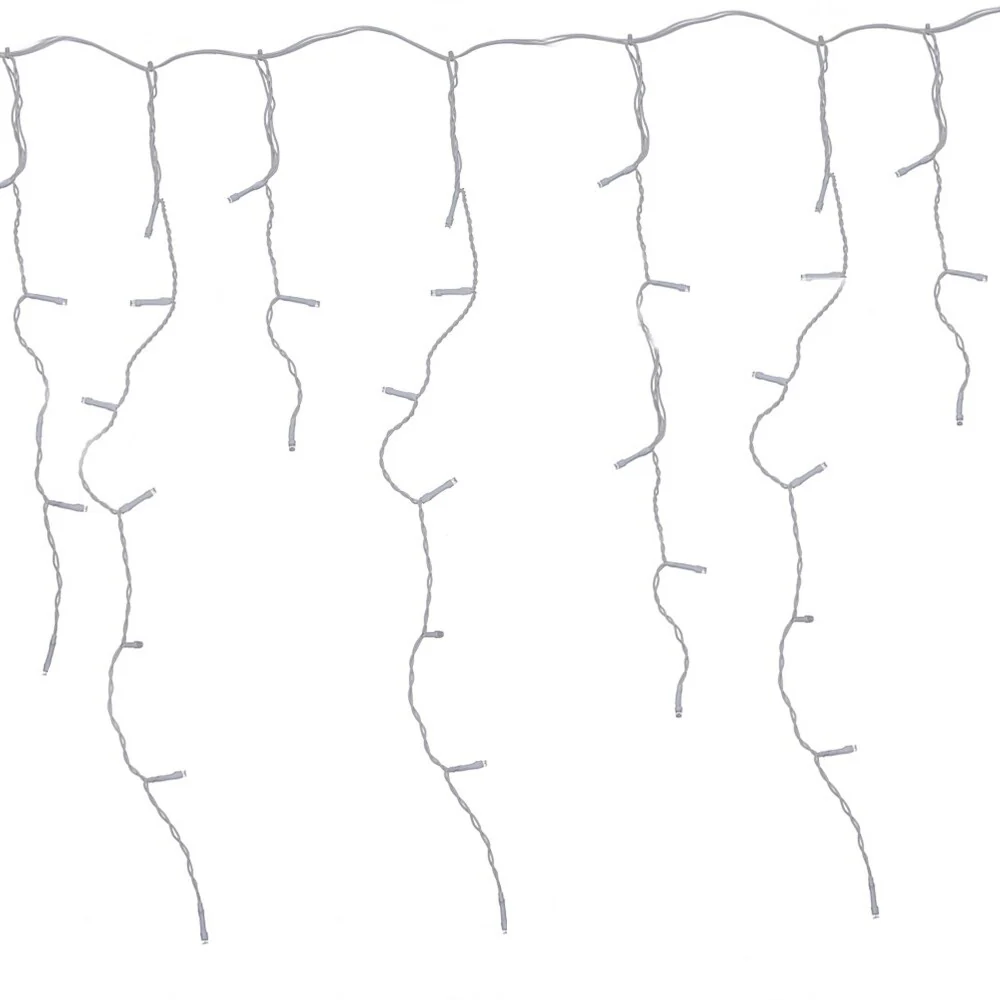 This year, make sure your holiday season is merry and bright with a new string of Christmas lights. These Clear Icicle Drop Christmas Holiday Lights look like dripping icicles so that you can make any area bright and festive in a flash. This string of lights is 27 feet long and has 150 lights; connectors at each end allow you to attach multiple strings together so no matter how much decorating you're doing, ALEKO has you covered. Perfect for decorating roofs, porches, parties, pergolas, gazebos, mirrors, bed frames, and more! The options are endless. Plugs safely into US outlets.