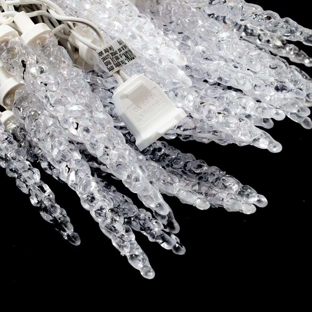 These Clear Crystal Cluster Icicle Holiday Lights resemble icicles, giving any area a bright, wintry glow in a flash. This string of lights is 25 feet long and has 50 LED icicle lights; connectors at each end allow you to attach multiple strings together so no matter how much decorating you're doing, ALEKO has you covered. Perfect for decorating roofs, porches, parties, pergolas, gazebos, mantles, and more! The options are endless. Plugs safely into US outlets.