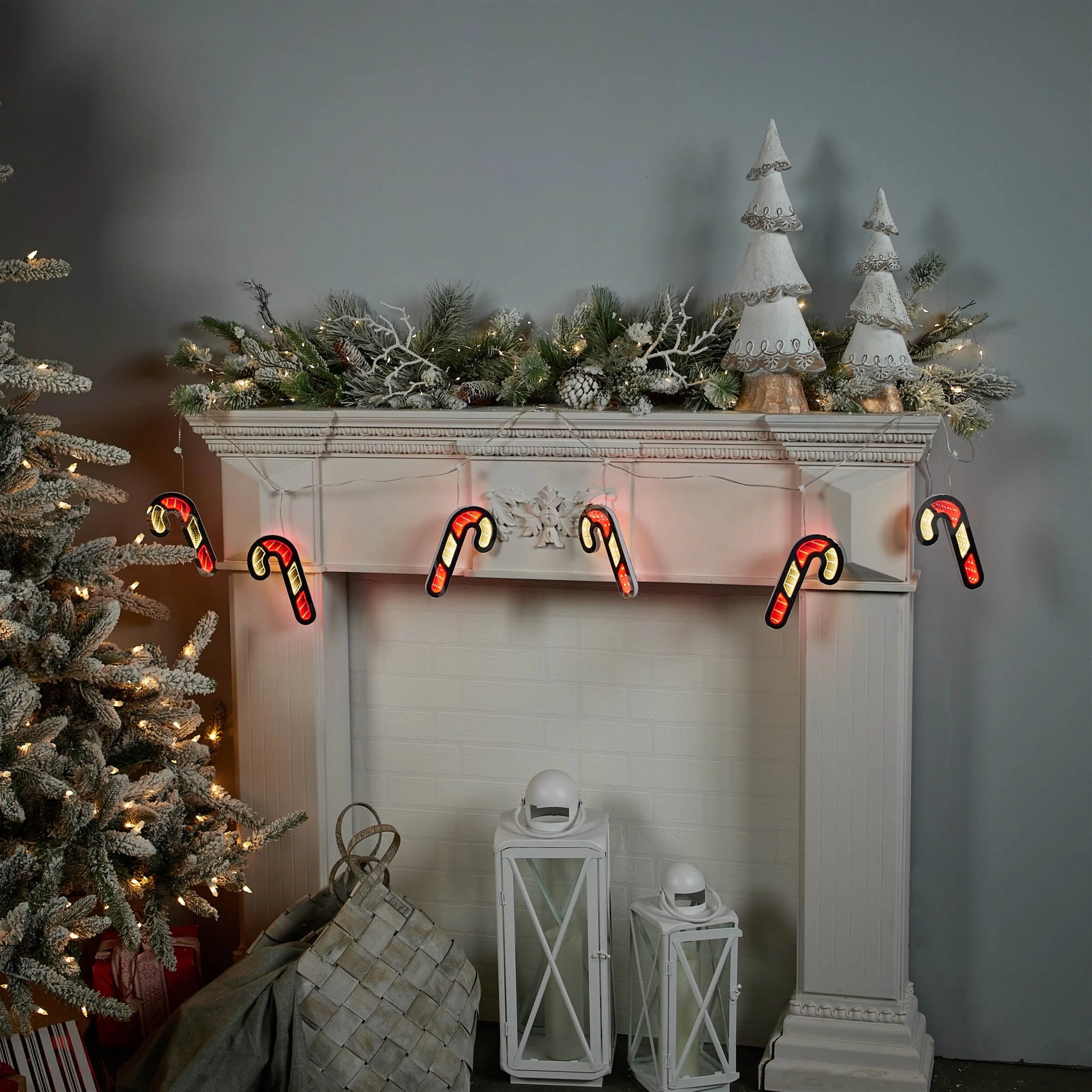 Add a festive twist to your holiday decor with the Candy Cane Ekkolight Garland. This 68-inch garland features traditional candy cane shapes illuminated with vibrant red and white tones, making it a perfect addition to any Christmas setting. The EkkoLight Infinity Lights create a captivating, never-ending glow, transforming your space into a winter wonderland. Whether draped over a mantle, along a banister, or wrapped around a tree, this garland is sure to bring holiday cheer.