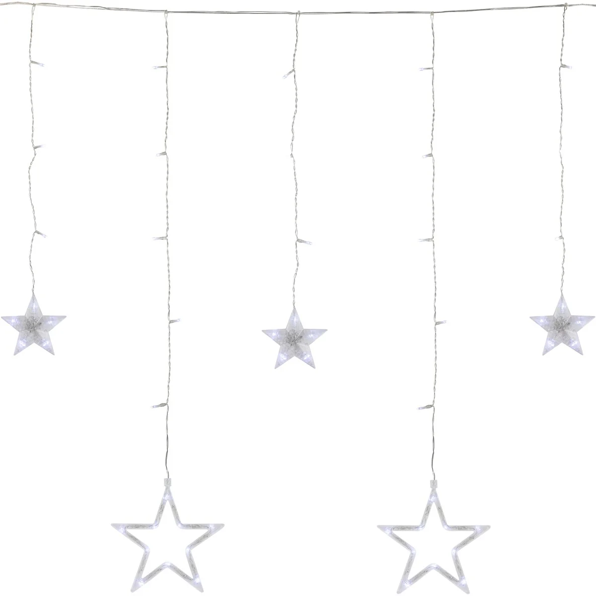 Create a winter wonderland this holiday season with this beautiful set of icicle Christmas lights. These enchanting lights feature pure white LED bulbs set on a clear wire that's UL certified for both indoor and outdoor use. With steady LED concave wide angle bulbs they create a magical glow that will captivate anyone who sees them. What sets these lights apart are the 6 large stars and 6 small stars that adorn the icicles adding a celestial touch to your holiday decorations. Let these lights illuminate your festive season and infuse your space with the spirit of Christmas.