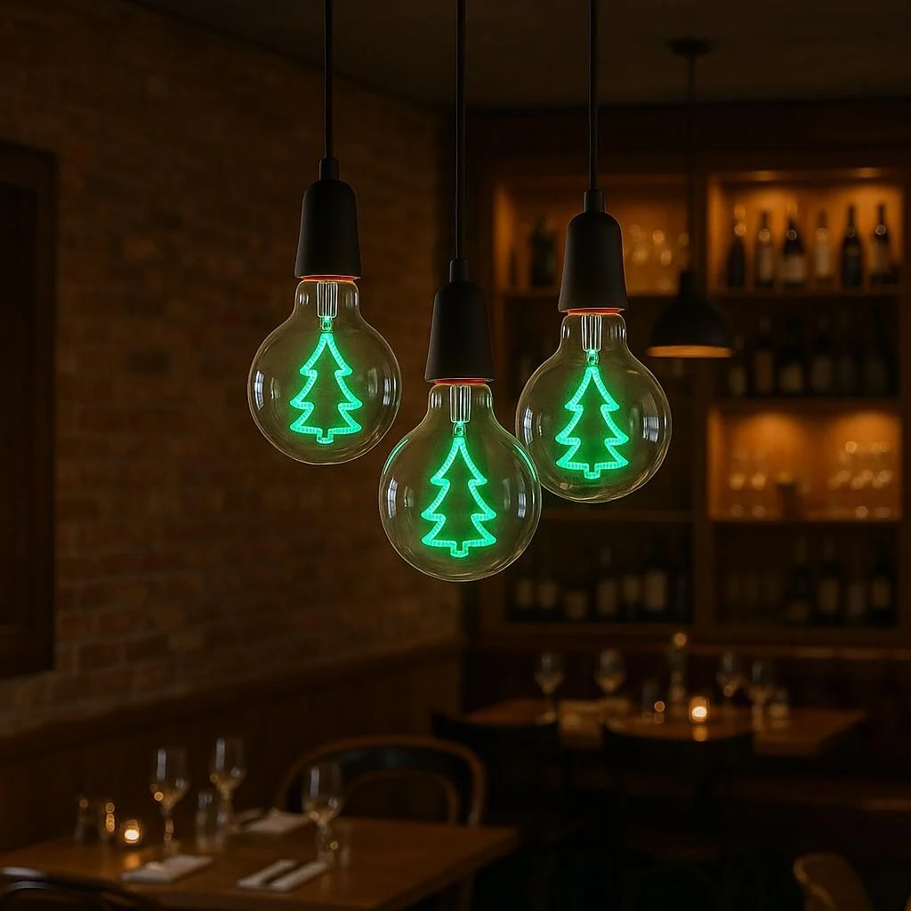 Bring festive cheer to your space with our Christmas Tree LED G80 Bulb! Designed with a bright green LED filament shaped like a classic Christmas tree, this bulb adds a warm and joyful glow to any room. Whether you're decking the halls, setting the mood for a holiday party, or just adding a little seasonal sparkle to your decor, this bulb is your merry must-have.