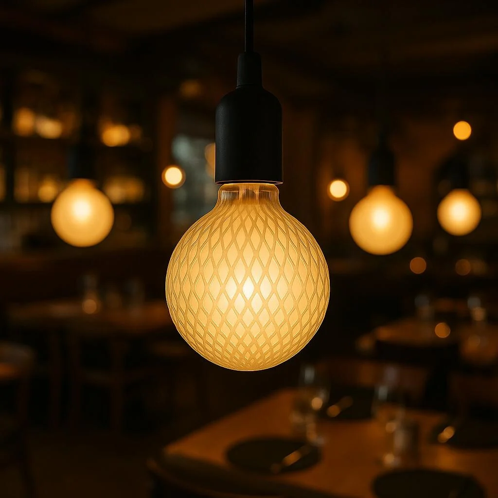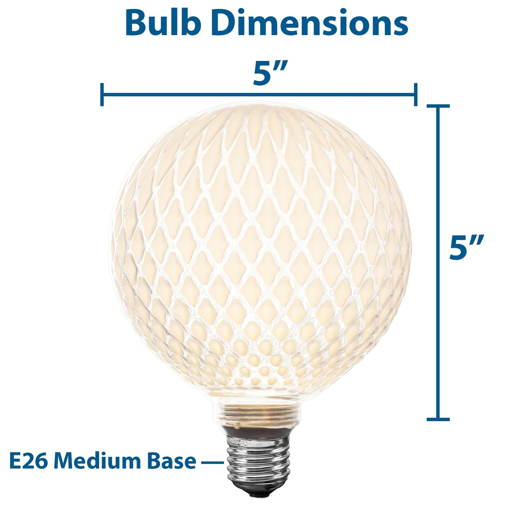 Festive Living's Diamond Luxe vintage globe light features an oversized shell with frosted glass in a diamond design, bringing unique charm to your space. These large globe E26 LED lights blend vintage aesthetics with modern efficiency.Our CoB LED globe bulbs consume just 3 watts of power while casting bright, warm, 2700K illumination. The standard E26 medium base fits everyday fixtures and combines classic style with 90% greater efficiency than traditional incandescent options.Silicone-coated and IP54-rated, these LED globe bulbs resist discoloration and weather damage, making them perfect for covered patios and outdoor entertaining spaces where traditional or plastic globes would falter.Enjoy 15,000 hours of reliable performance from these stylish globe light bulbs that seamlessly merge nostalgic decorative charm with advanced illumination technology for modern homes. Couple that with our 1-year warranty and US-based customer service for a truly worry-free investment in your home's décor.Perfect for pendant fixtures, string lighting arrangements, or table lamps, these premium vintage light bulbs enhance any space with their distinctive glow.