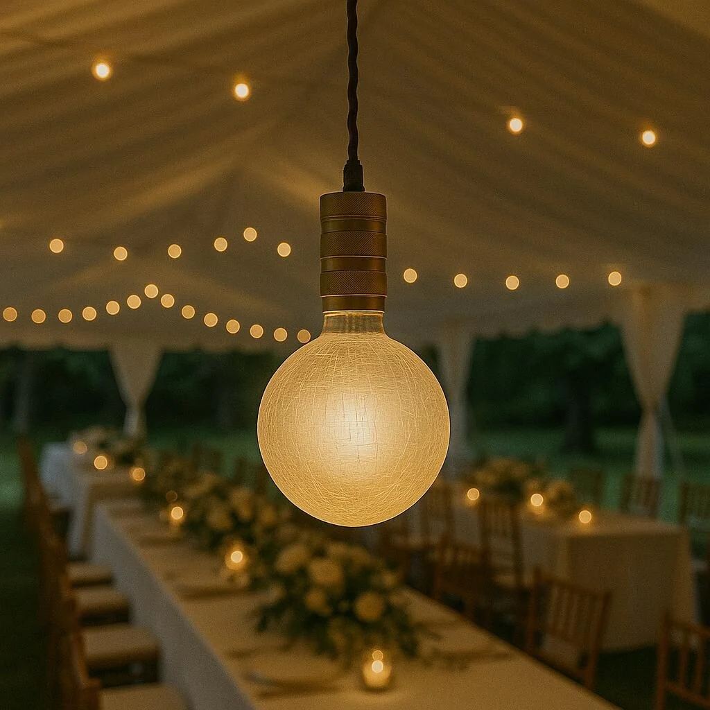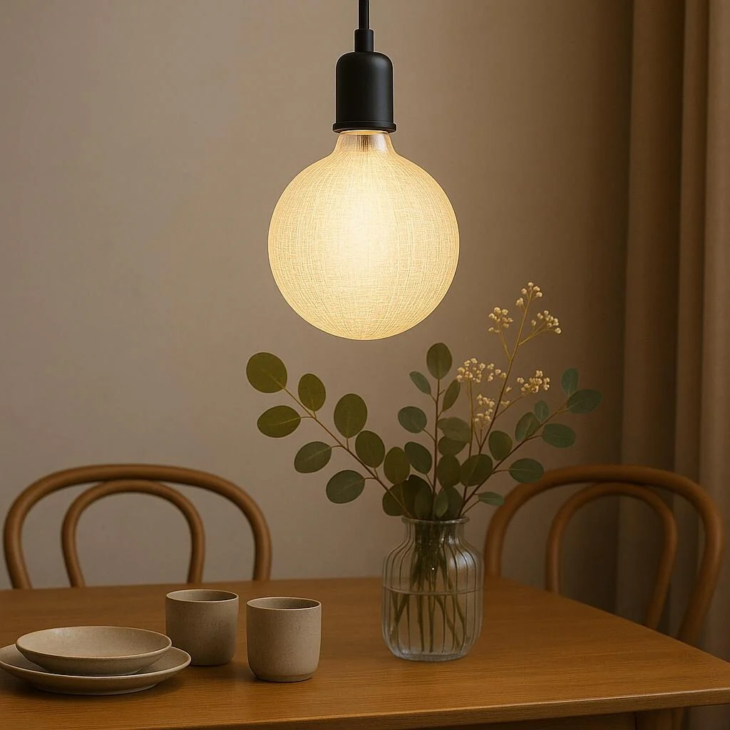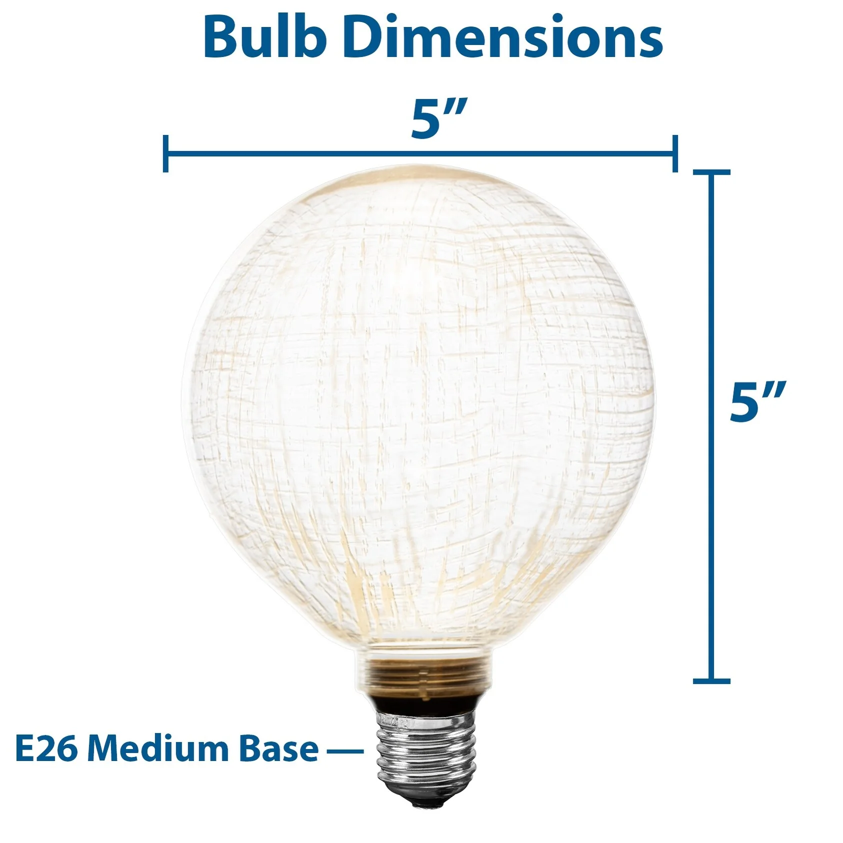Festive Living's Solara Classic vintage globe light features an oversized shell with partly frosted glass in a canvas-like pattern, bringing unique charm to your space. These large globe E26 LED lights blend vintage aesthetics with modern efficiency.Our CoB LED globe bulbs consume just 3 watts of power while casting bright, warm, 2700K illumination. The standard E26 medium base fits everyday fixtures and combines classic style with 90% greater efficiency than traditional incandescent options.Silicone-coated and IP54-rated, these LED globe bulbs resist discoloration and weather damage, making them perfect for covered patios and outdoor entertaining spaces where traditional or plastic globes would falter.Enjoy 15,000 hours of reliable performance from these stylish globe light bulbs that seamlessly merge nostalgic decorative charm with advanced illumination technology for modern homes. Couple that with our 1-year warranty and US-based customer service for a truly worry-free investment in your home's décor.Perfect for pendant fixtures, string lighting arrangements, or table lamps, these premium vintage light bulbs enhance any space with their distinctive glow.