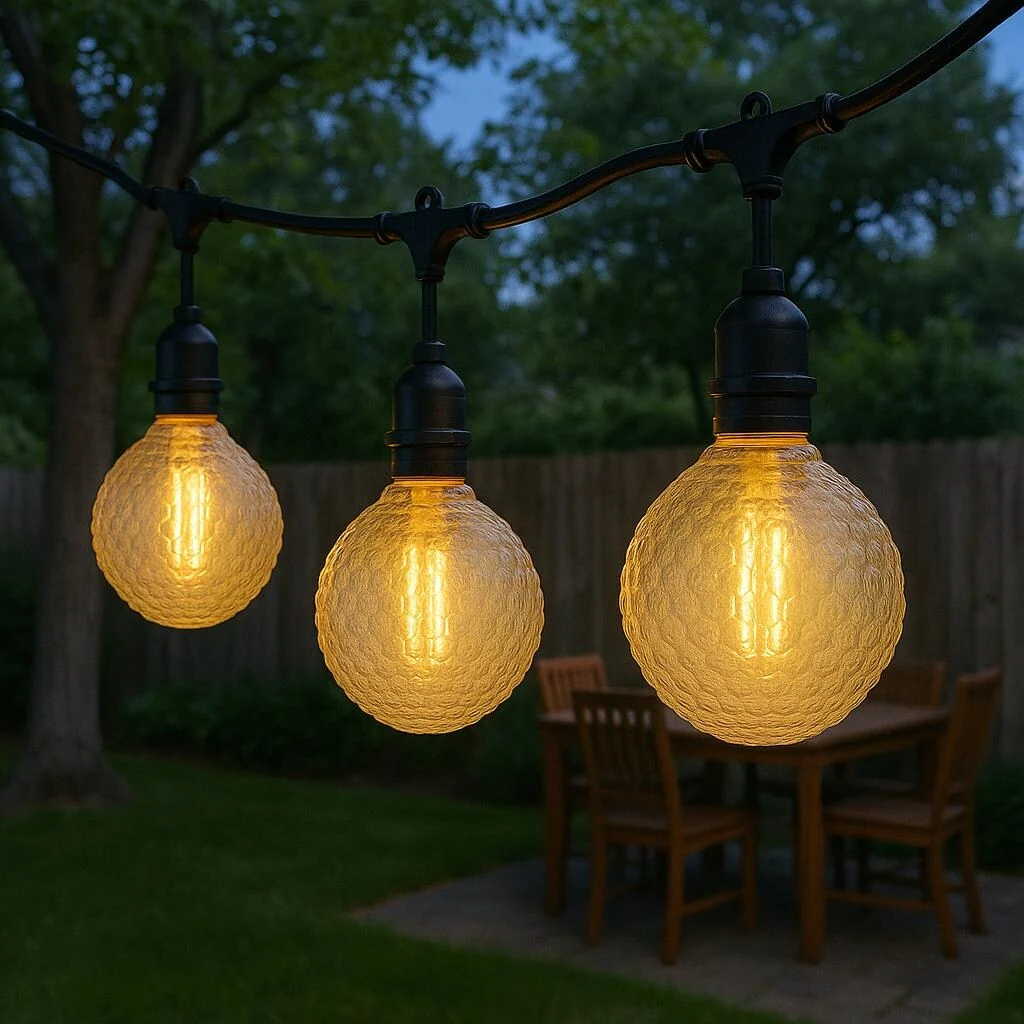 Festive Living's Dimpled Dawn vintage globe light features an oversized shell with dimpled glass, bringing timeless charm to your space. These large globe E26 LED lights blend vintage aesthetics with modern efficiency.Our filament LED globe bulbs consume just 4 watts of power while casting bright, warm, 2700K illumination. The standard E26 medium base fits everyday fixtures and combines classic style with 90% greater efficiency than traditional incandescent options.Silicone-coated and IP54-rated, these LED globe bulbs resist discoloration and weather damage, making them perfect for covered patios and outdoor entertaining spaces where traditional or plastic globes would falter.Enjoy 15,000 hours of reliable performance from these stylish globe light bulbs that seamlessly merge nostalgic decorative charm with advanced illumination technology for modern homes. Couple that with our 1-year warranty and US-based customer service for a truly worry-free investment in your home's décor.Perfect for pendant fixtures, string lighting arrangements, or table lamps, these premium vintage light bulbs enhance any space with their distinctive glow.