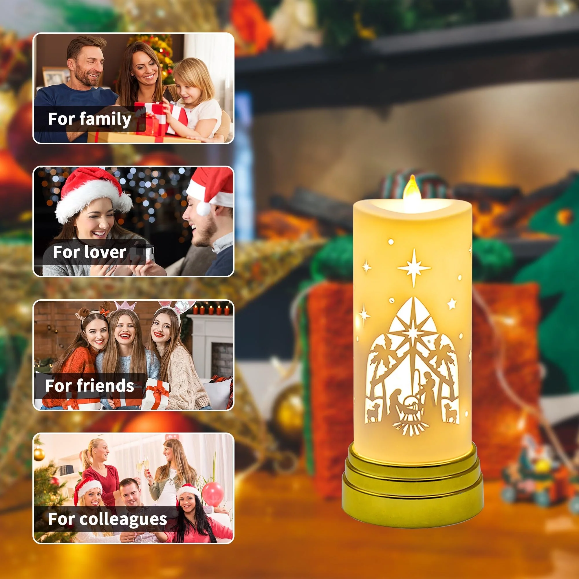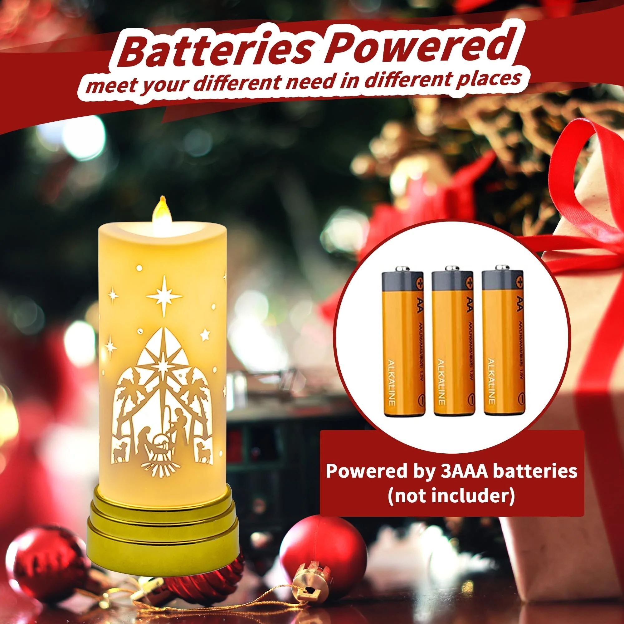 【Amazing Gift / Decoration for Christmas】The elegant and cool luxurious look of our flameless candles (which is hard to find in battery operated candles) are perfect for your bedroom, kitchen, window and other places. It will be the best choice for your Christmas decoration and increases the festival atmosphere! It will be a surprise if you sent this delicate package to your family and friends as a winter holiday gift.