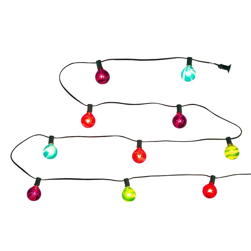 This 10-Light G50 Multi-Color Glass Ball Light Set from Kurt Adler is a classic and festive way to add to the lighting of your Christmas tree and holiday décor. Each of the 10 lights in this light set features the traditional G50 bulb design in bright multi-colors including red, green, blue, and purple. The set boasts 10 multi-color incandescent bulbs, 30-inch lead wire, 12-inch light spacing and a 4-inch end connector which can connect up to 3 sets!