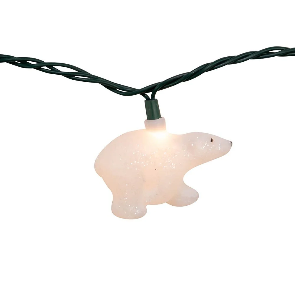 This UL 10-Light White Glitter Bears Light Set from Kurt Adler is a fun addition to any holiday décor! This novelty light set features 10 bears in glitter white spaced 12-inches apart. The set includes a 30-inch lead wire and a 6-inch end connector. Great for decorating both indoor and outdoor.