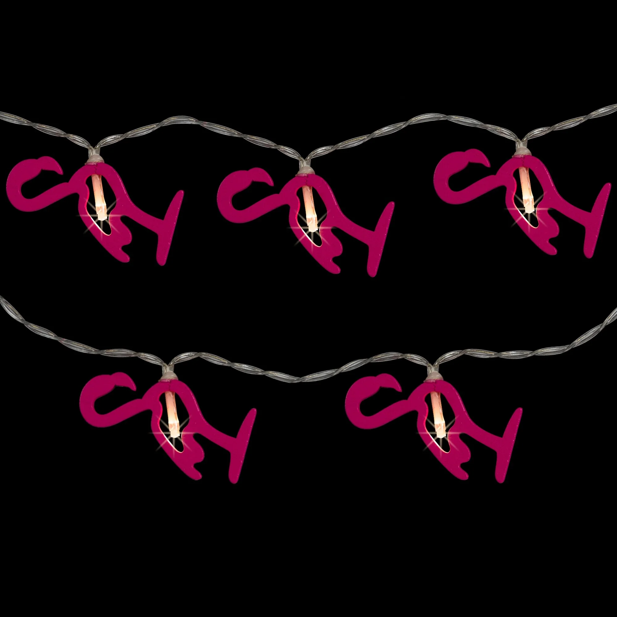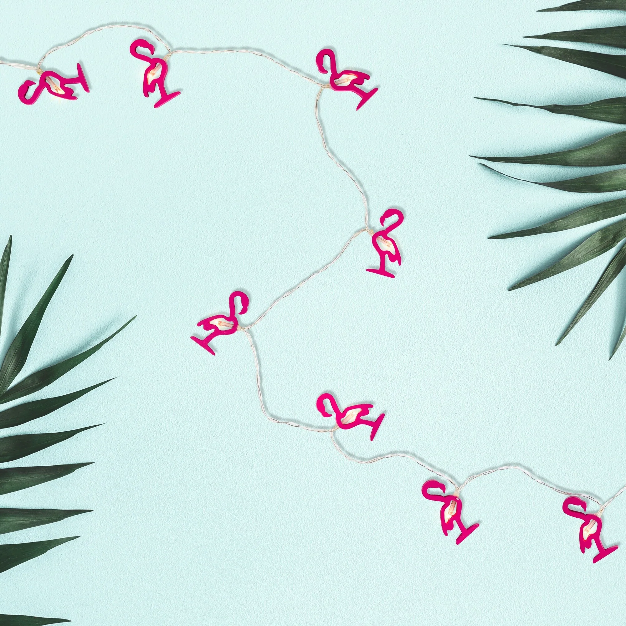 Light up your space with these adorable pink flamingo lights. These battery-powered lights require 2 double A batteries which allow hanging from more places. Perfect for adding some holiday magic to your wreaths, trees, garland, or add to your lanterns and vases for some unique sparkle.