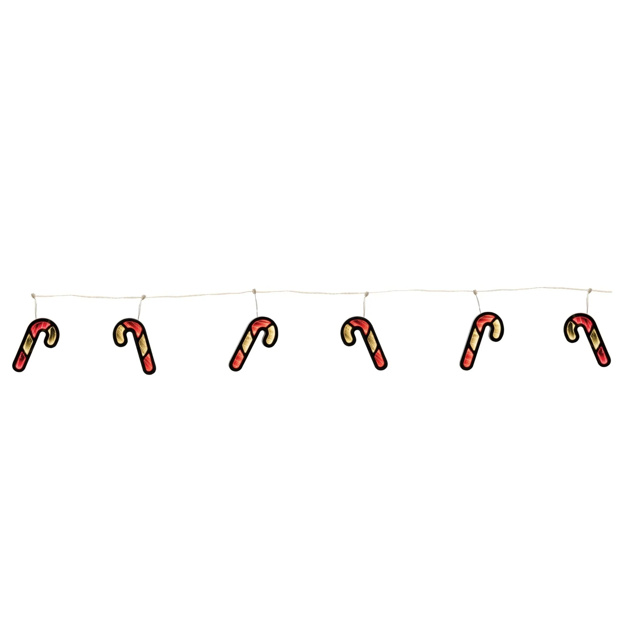 Add a festive twist to your holiday décor with the candy cane garland. Featuring classic candy cane shapes in bold red and white, this charming garland adds a sweet, nostalgic touch to any Christmas display. Illuminated with the enchanting Infinity Lights effect, it creates a mesmerizing glow that appears to go on forever. Perfect for mantles, banisters, or Christmas trees, this radiant garland brings warmth, whimsy, and holiday cheer to your home with every glowing twist and curve.