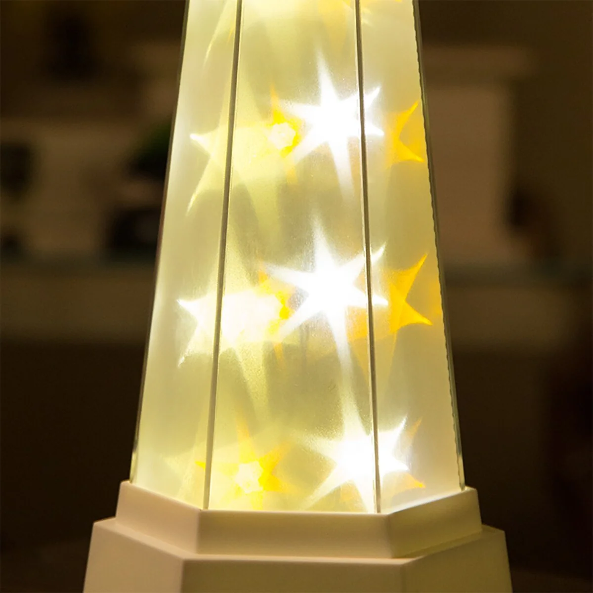 LED Christmas Tree:Stylish lighted christmas tree built-in luminous small lights, powered by 3 AA batteries (exclude).dazzling and colorful, it is conspicuous and eye-catching against the backdrop of the dark night, which can create a dreamy holiday atmosphere