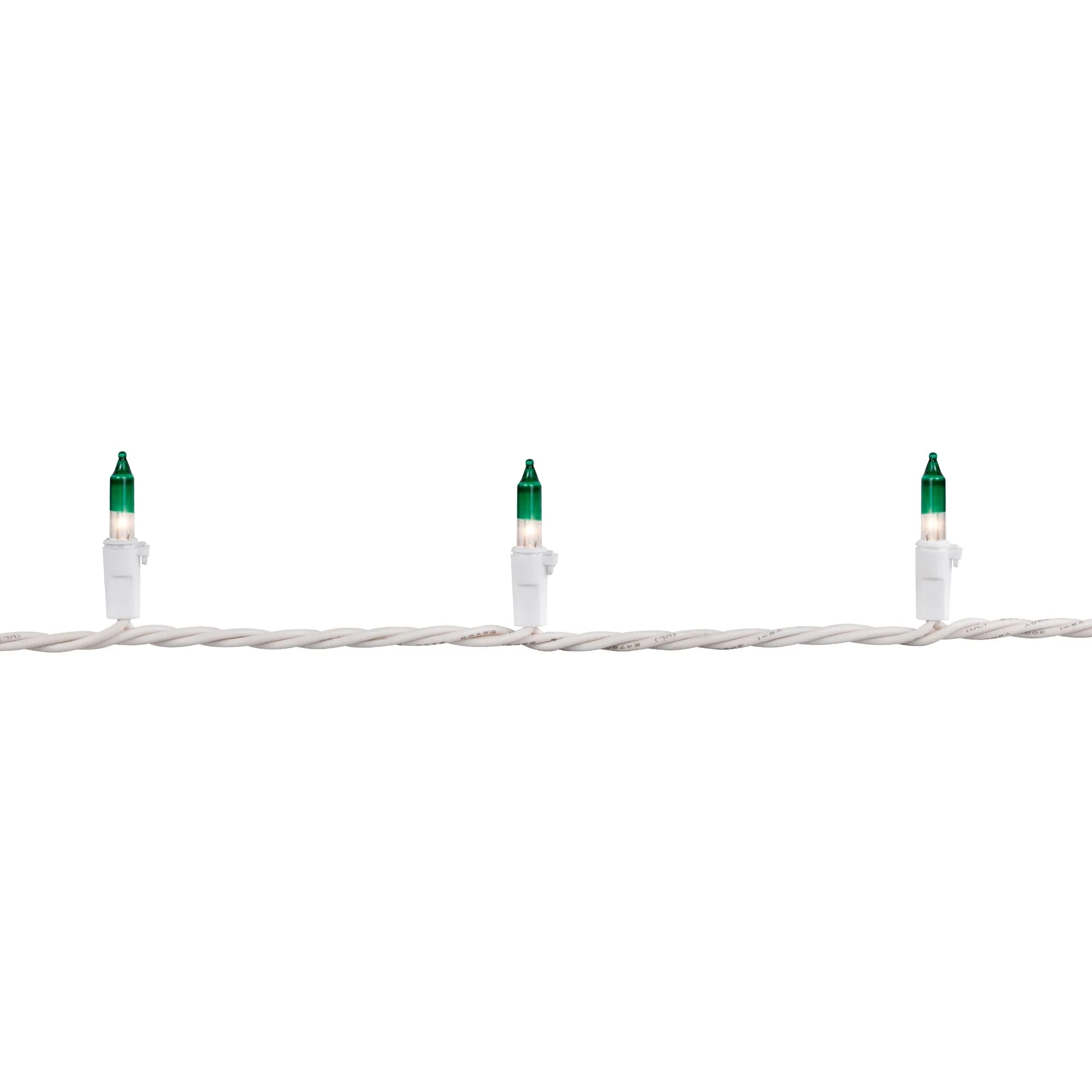 Mini Christmas Light Set - Clear with Green Tip - 10' White Wire - 50ct