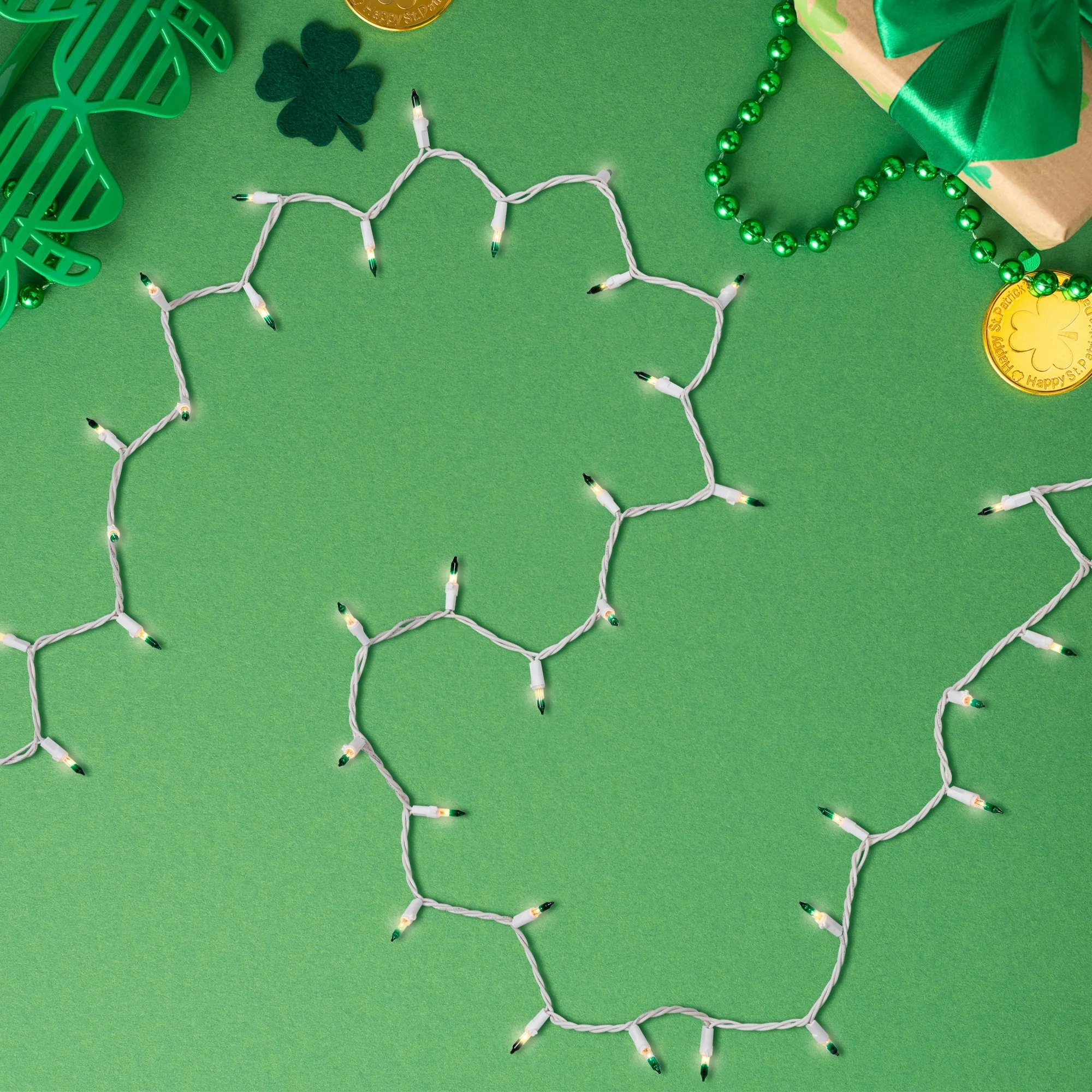 Brighten up your celebrations with this 50-count mini Christmas light set featuring clear bulbs with green tips. Ideal for adding a festive glow to your Christmas tree, these lights also make a charming addition to your St. Patrick's Day decor. Versatile and vibrant, they're perfect for any occasion that calls for a touch of sparkle.