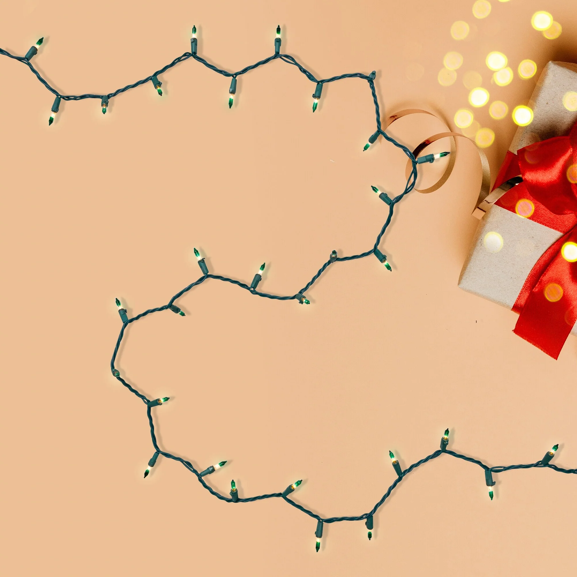 Brighten your holiday season with a 100-count mini Christmas light set featuring clear bulbs and green tips. These versatile lights add a festive touch to your Christmas tree, wreaths, and garlands, and their green accents make them a great choice for St. Patrick's Day decorations as well. Perfect for both indoor and outdoor use, this set brings warmth and charm to any occasion.