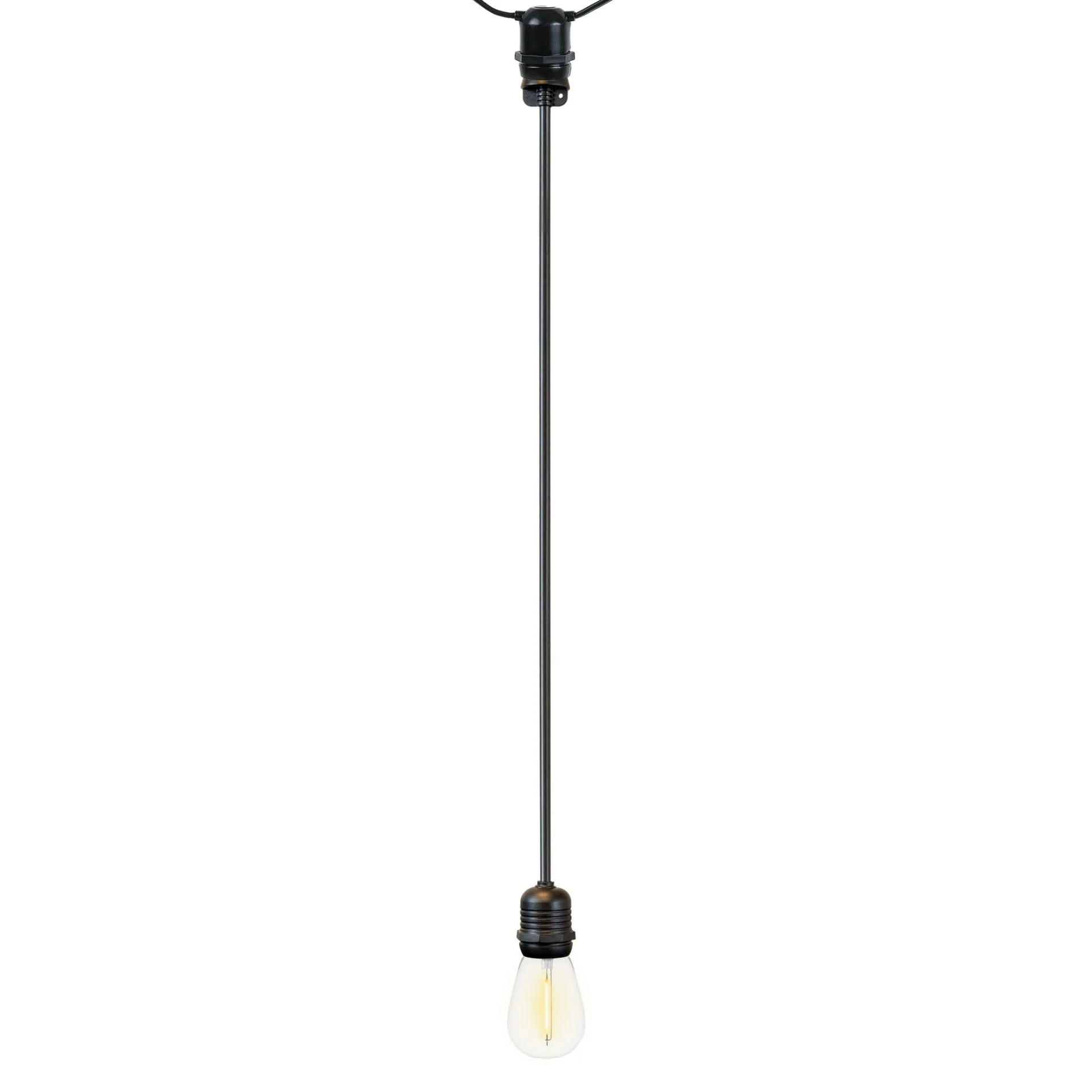 Heavy-duty outdoor string lights have never been more enchanting, thanks to the Novelty Lights E26 Medium Base 18-Inch Socket Extenders. Commercial grade and tailored for customizing outdoor lighting, this product revolutionizes the way you illuminate your backyard, patio, or cafe.Sporting a sleek black color, the socket extension adds a dash of elegance to your outdoor lighting. The light bulb extension socket forms a tight water-resistant seal, ensuring your lights' longevity and shielding them from harsh weather conditions.Durable and safe, this product is designed to integrate seamlessly with most any medium base E26 stringer. The E26 socket extender lets you create drop extensions for your string lights, adding depth and dimension to your lighting design. Built with the same solid construction and hearty components as our heavy-duty stringers, you won't be sacrificing durability for design when choosing these extenders.Built to endure, the light bulb extender is UV resistant for outdoor use, ensuring they won't dull or damage under the harsh sun rays. Rest assured, this addition to your string set will remain vibrant and beautiful for a years to come. Rated for a maximum draw of 11 watts per socket, these extenders can handle most any standard patio string light bulb, whether LED or incandescent.In essence, our Novelty Lights socket extenders E26 are a harmonious blend of style, durability, and efficiency, making them essential for your unique outdoor lighting needs.